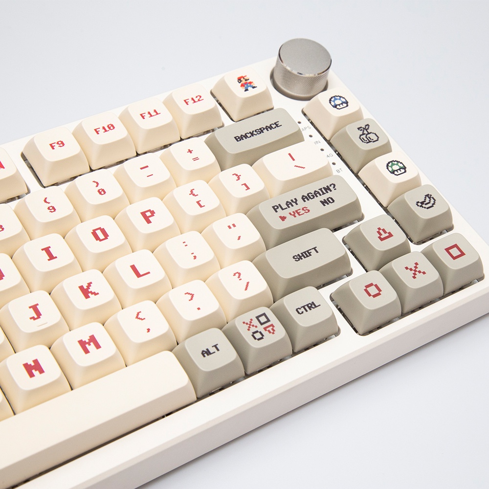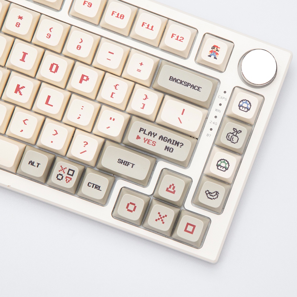 Retro Mario Red and White Keycaps XDA profile PBT 129 Keys Suitable for 108/87/61 Game Mechanical Keyboard Keycap
