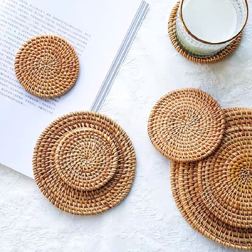Retro Natural Handmade Woven Rattan Placemat Table Mat Coffee Table Mat