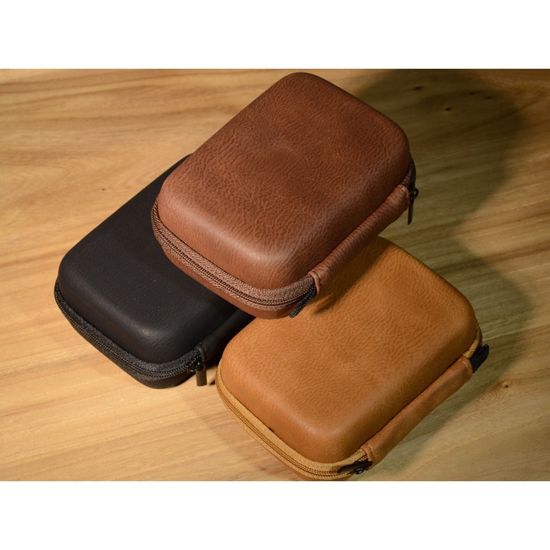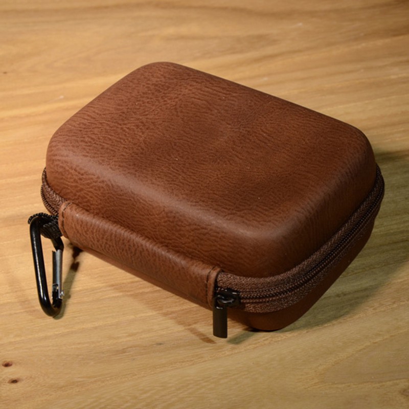 Retro PU Leather Storage Box Portable Earbus Data Cable Case with Metal Hook