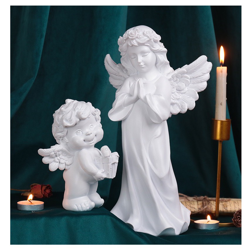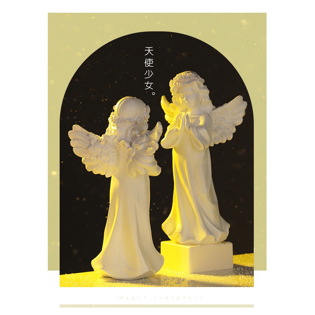 Retro Praying Angel Figurine Resin Guardian Angel Statue Indoor Home Garden Decoration Sculpture Mem