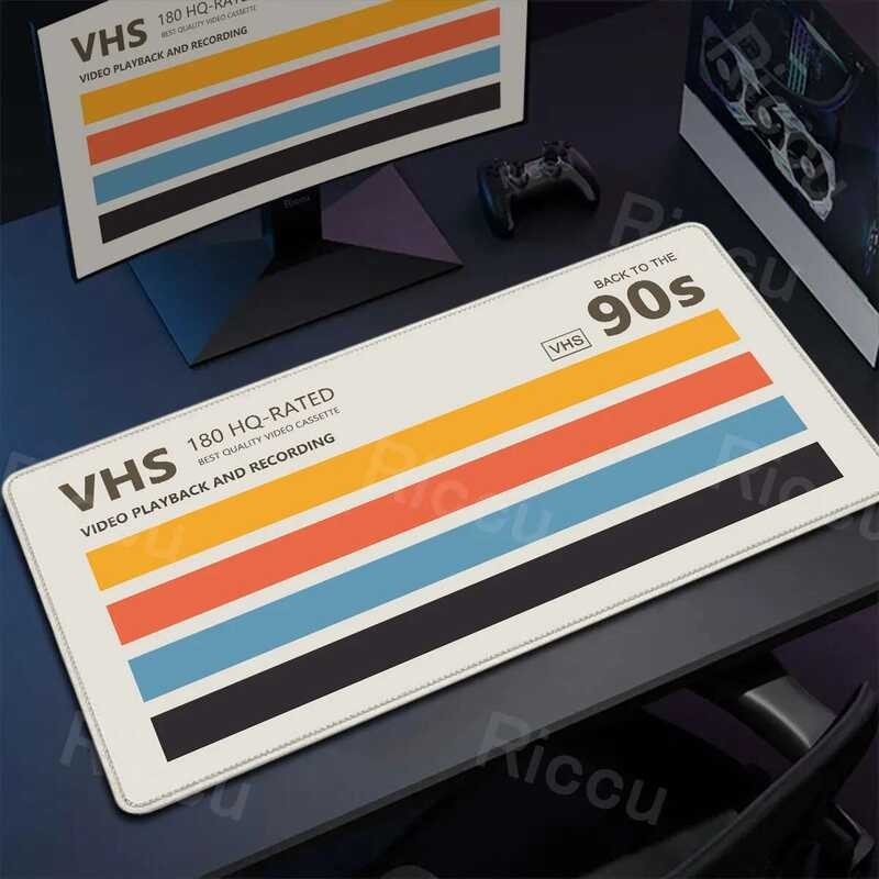 Retro VHS Style Mouse Pad Xxl Computer Large Size Mousepad Non-slip Gamer Keyboard Mausepad 90x40cm Art Design HD Deskmat Carpet