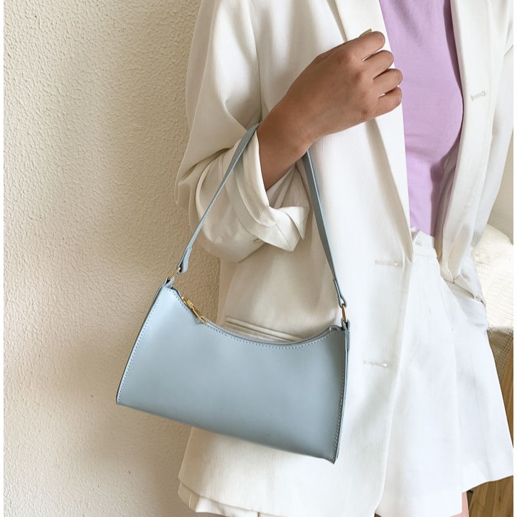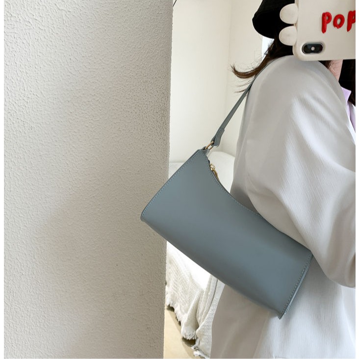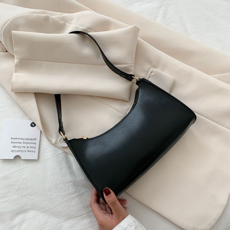 Retro Women Handbag PU Leather Shopping Totes Ladies Elegant Solid Color Shoulder baguette Bag