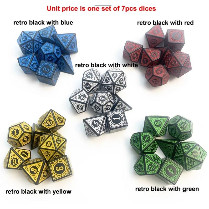 Retro colors Acrylic RPG dice 7pcs per set