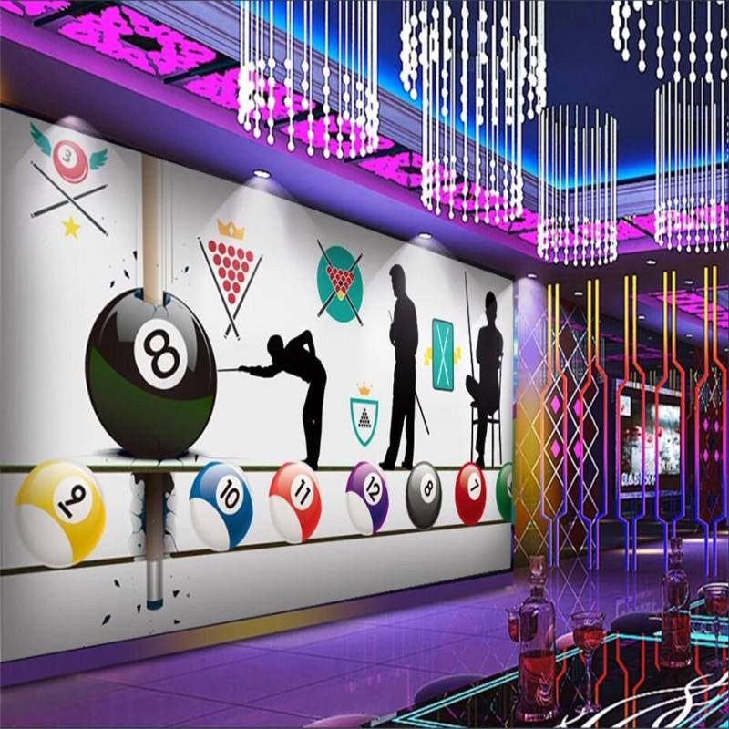 Retro nostalgic billiard entertainment club industrial decoration mural wallpaper 3D pool billiard room background wallpaper wall covering 3D