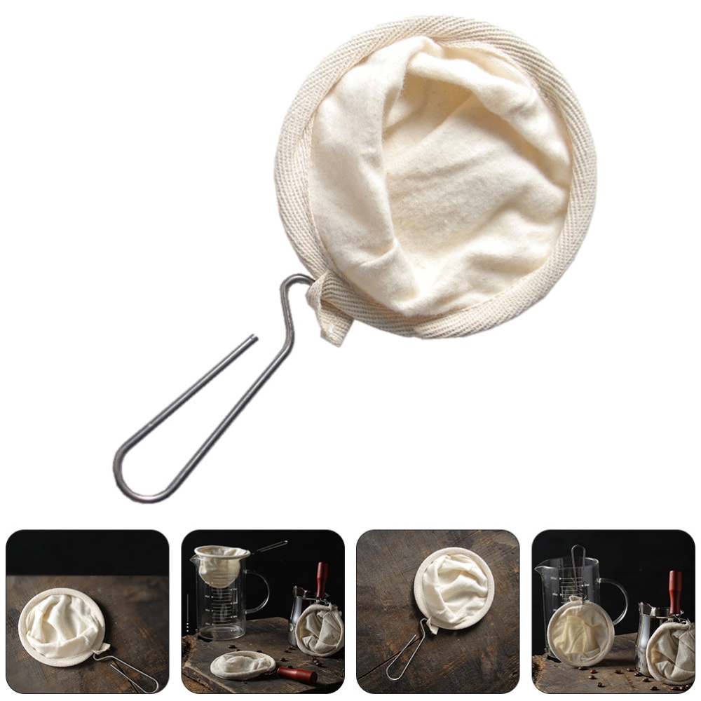 Reusable Coffee Milk Tea Filter Cloth Bag With Stainless Steel Handle Flannel Cloth Strainer Bag