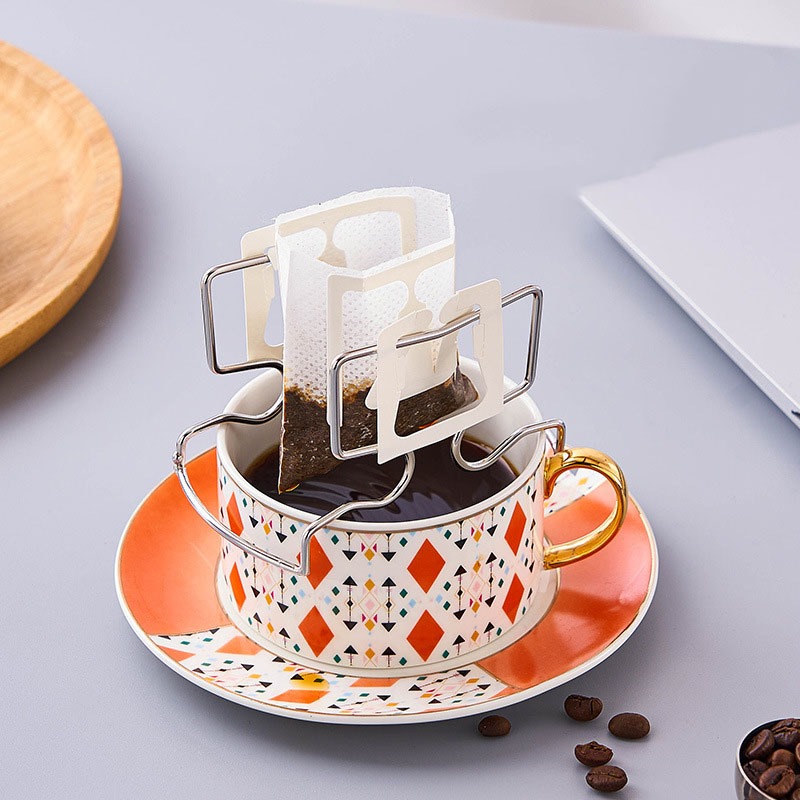 Reusable Espresso Coffee Filter Drip Holder Bag Stainless Steel Hanging Ear Stand Rack Easy Use Home Office