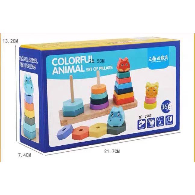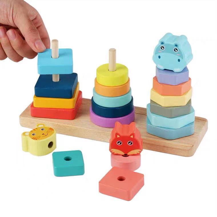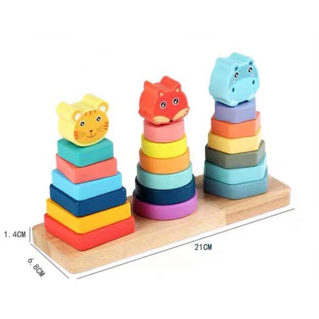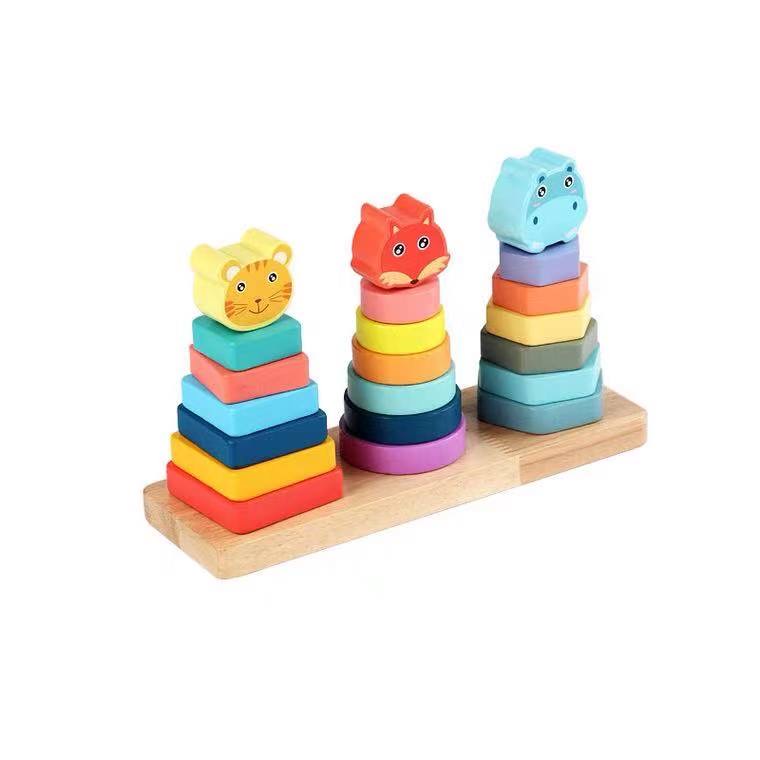 Rice 3in1 Colorful Animal Stacker Toy Wooden Toys for Kids Colorful Animal Tower Set of Pillars