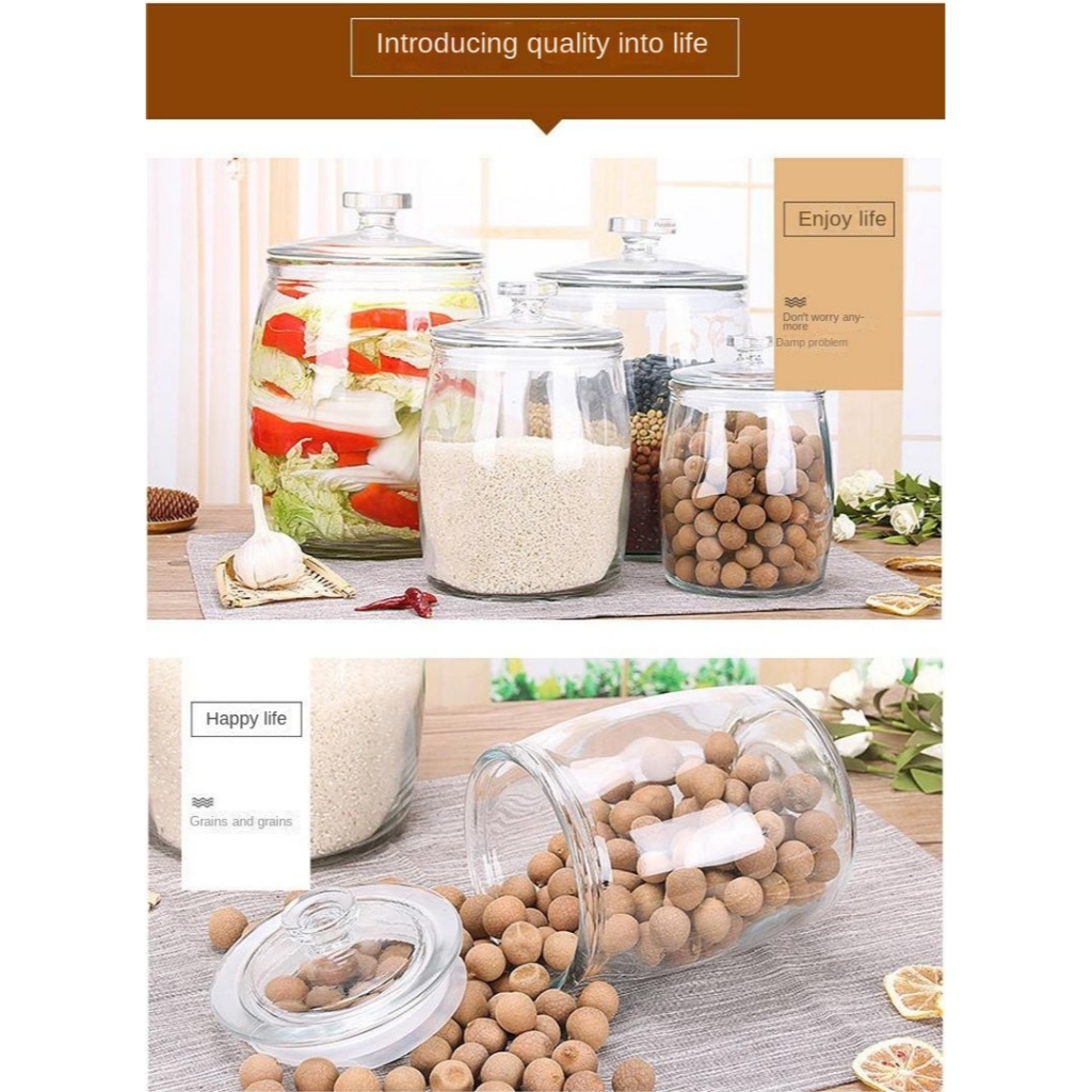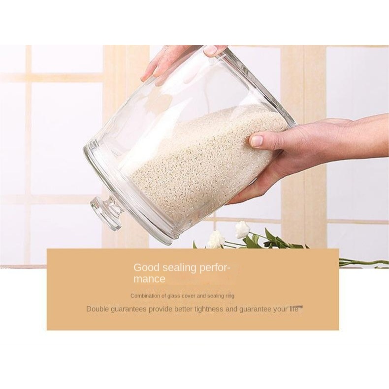 Rice dispenser 10kg glass jar with lid/airtight container food storage glass jar container big jar
