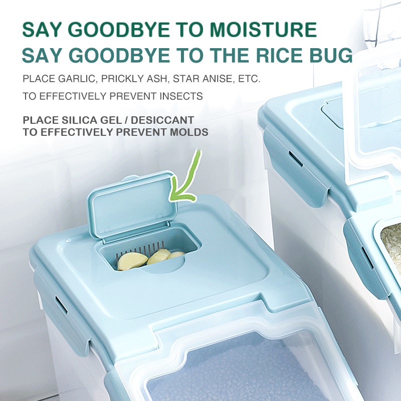 Rice storage container rice dispenser 25kg storage Rice Dispenser with Scoop PP Plastic