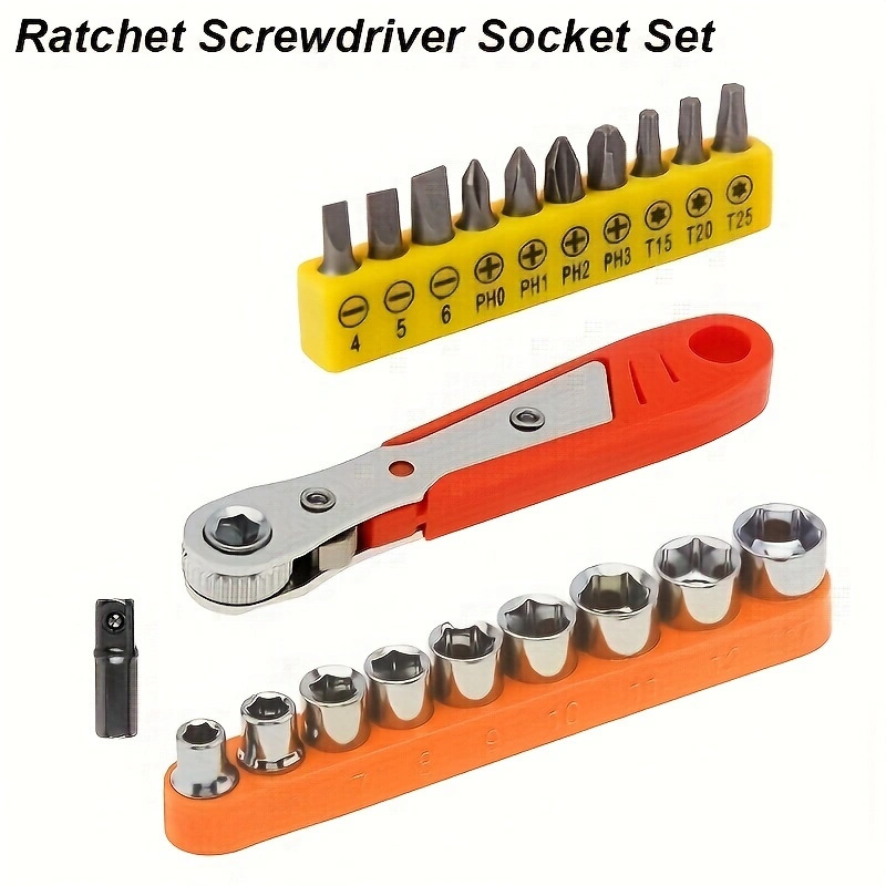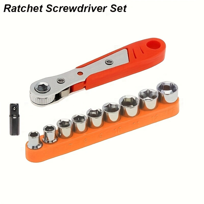 Right Angle Ratchet Wrench Set, Metric Screwdriver Socket Hex Nut Kit with 90-Degree Offset Handle
