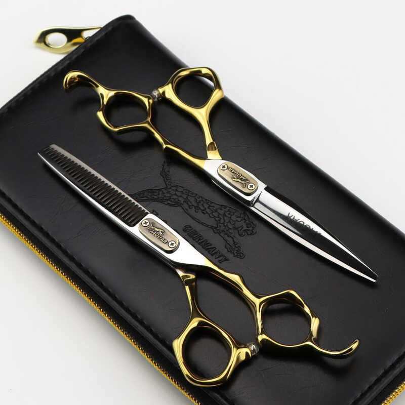 German Leopard Hairdressing Scissor With Golden Handle 6.0 Inch Scissor, Flat Bang Thinning Free Box