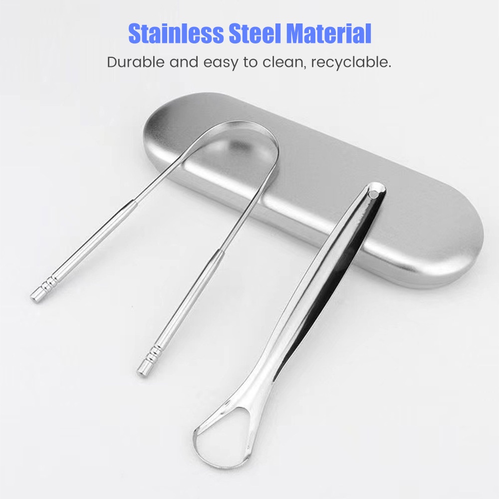 Salorie Tongue Scraper Cleaner for Adults Surgical Grade Professional Eliminate Bad Breath Stainless Steel Metal Tongue Brush Dental Kit