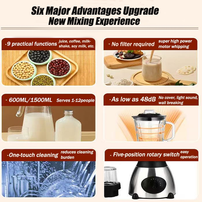 Portable Juicers Heavy Duty Original 1.5L Fruit Blender Juicer Fruits And Vegetable 2in1 Ice Crusher