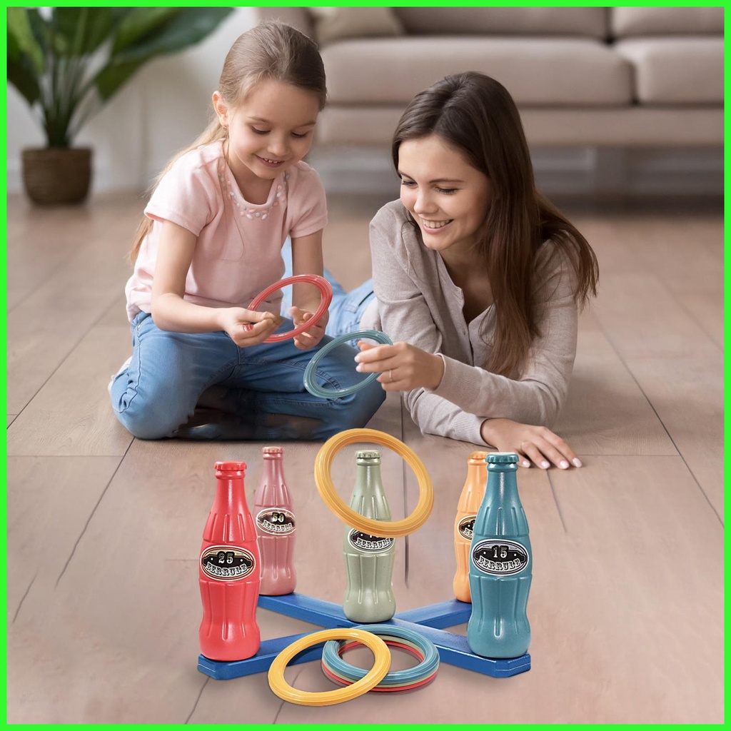 Ring Toy Toss Game Creative Ring Tossing Game Set with 5 Coke Bottles Interactive Toddler Ring Game for Birthda fitshoph