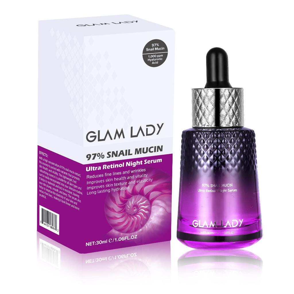 GLAM LADY 97% Snail Mucin Ultra Retinol Night Serum Anti Ageing Face Serum