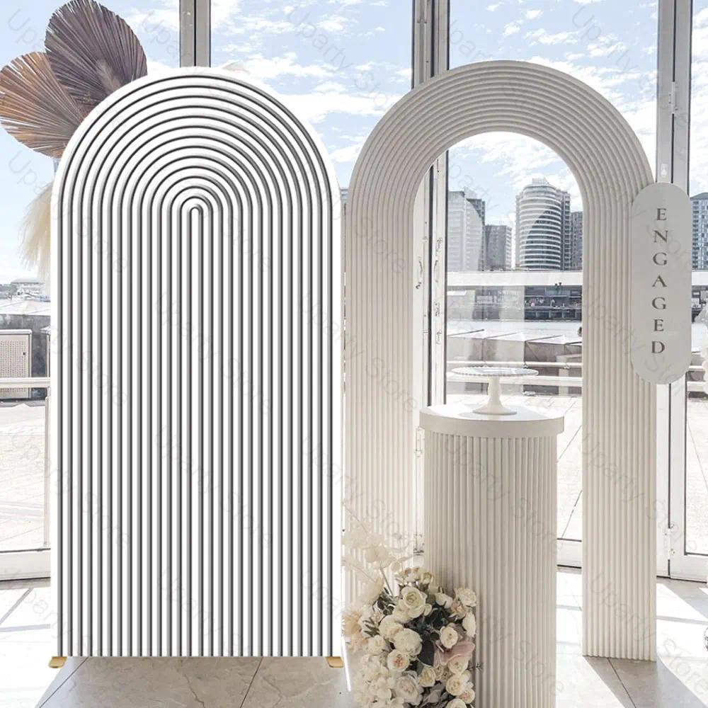 Ripple Arch Backdrop Cover Abstract Black White Ripple Top Round Stand Frame Cover for Birthday Baby Shower Wedding Party Decor