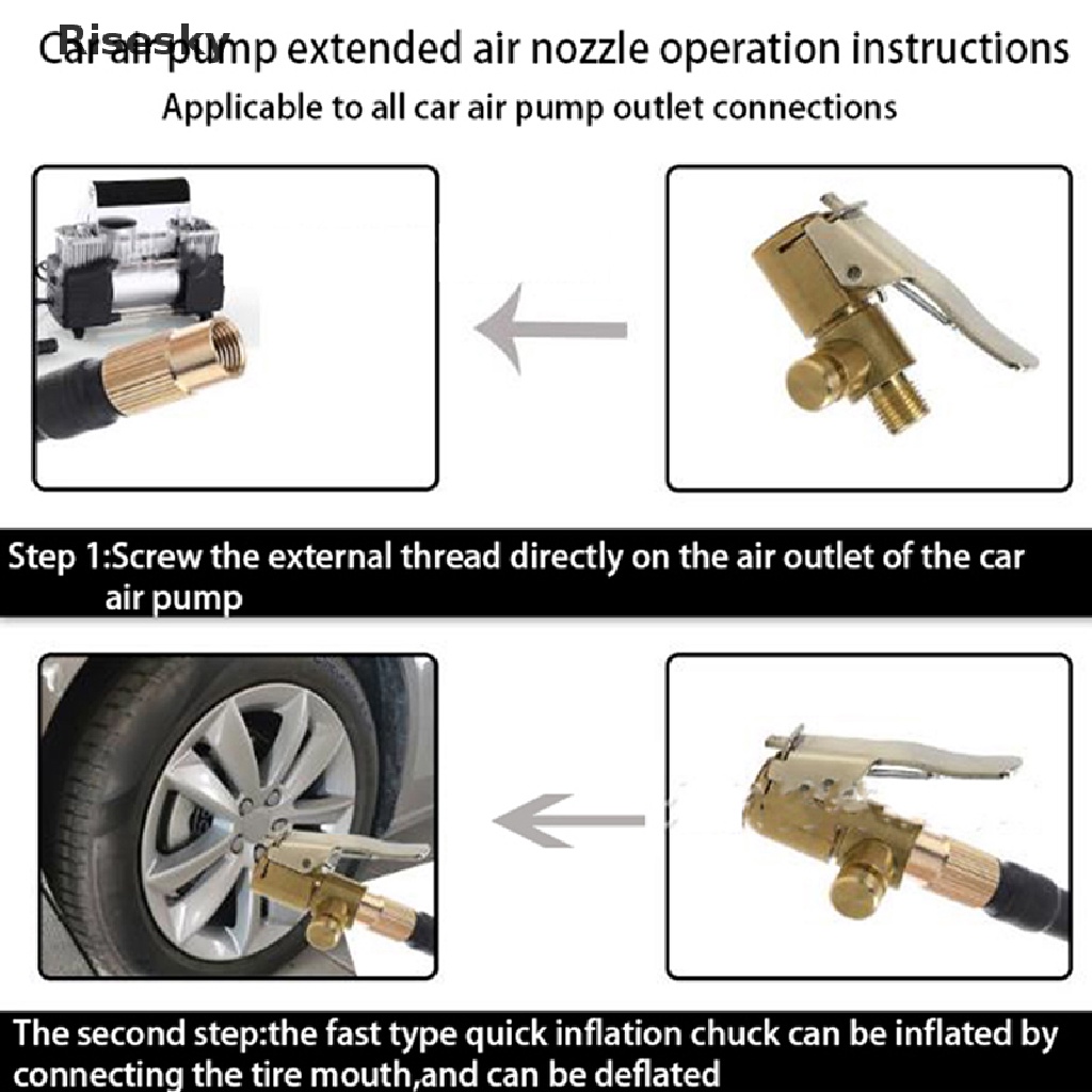 Risesky 8mm Brass Car Tire Inflator Valve Stem Connector Air Chuck Lock On Clip Adapter *New