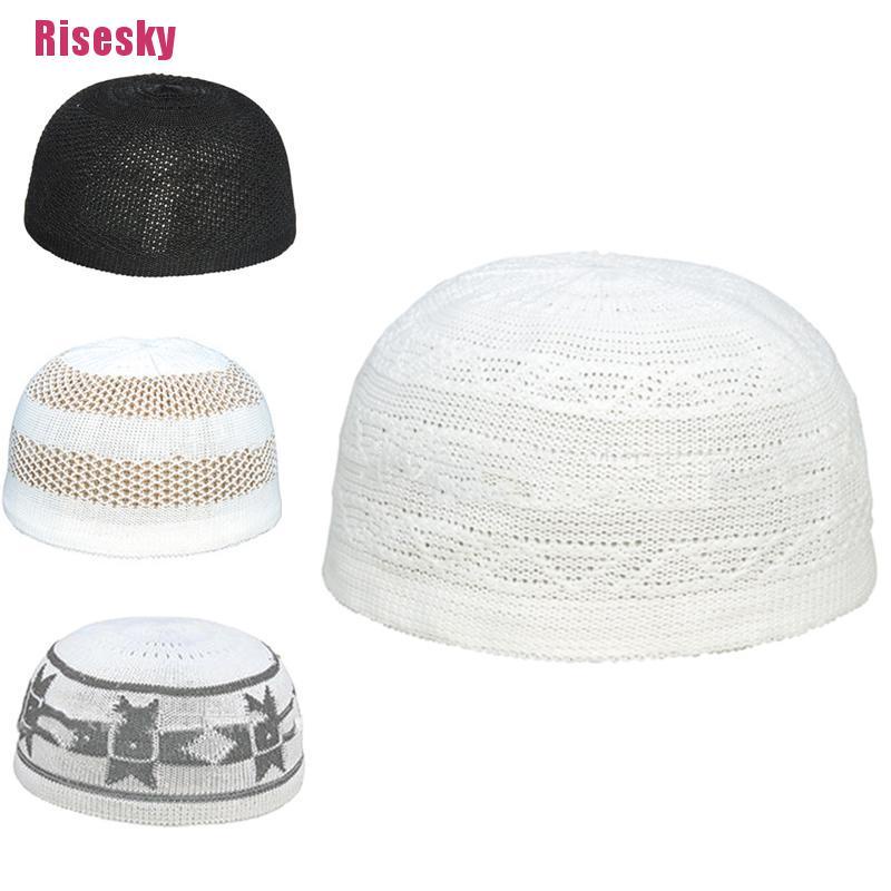 Risesky@ Men Skull Cap Muslim Islamic Prayer Hat Cotton Knitting Head Wear Hats New 2021
