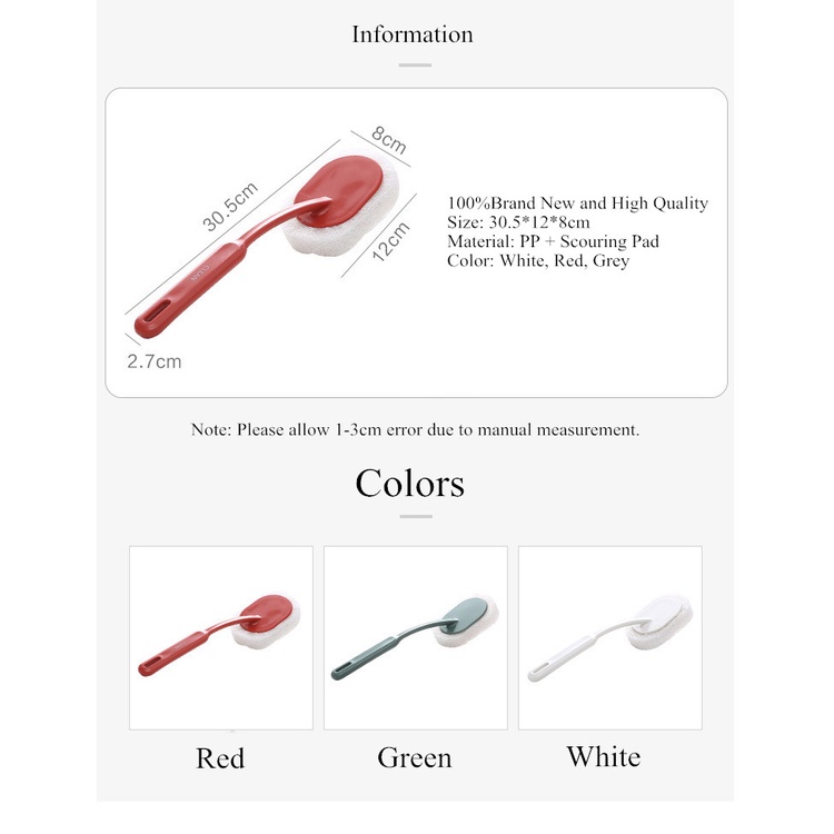 Rising Star Long Handle Sponge Wipe Brush Bathroom Bathtub Brush Floor Tile Wall Cleaning Brush