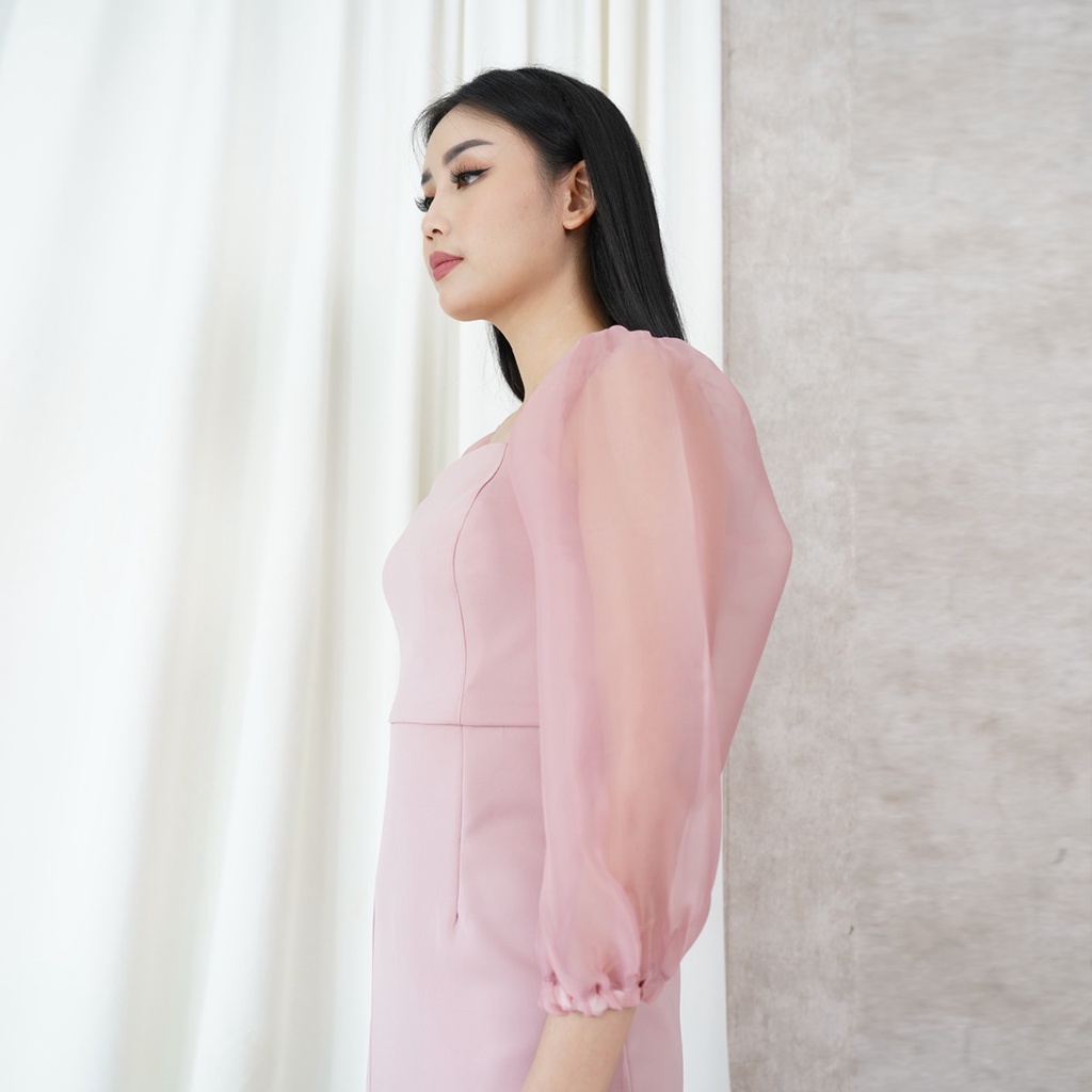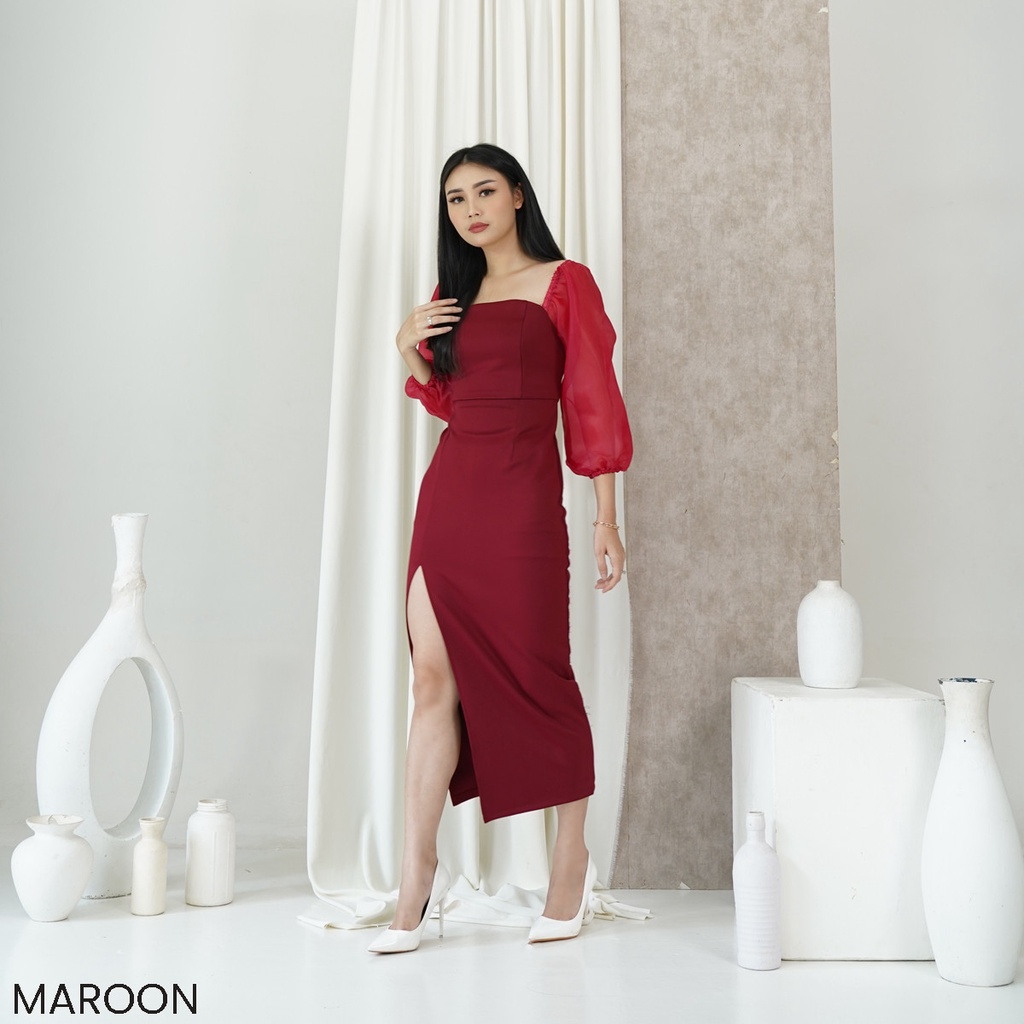 Risty Long Scuba Dress Organza Long Sleeve Slit Maxi Irish Dress - CG221005