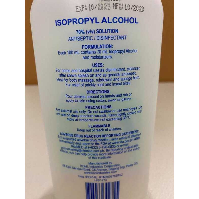 Ritemed 70% Ethyl And Isoprophy Alcohol With Moisturizer 100% Authentic Bf3