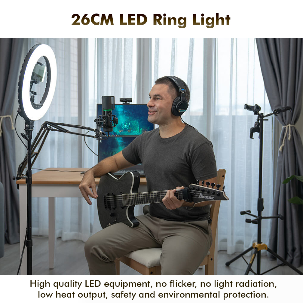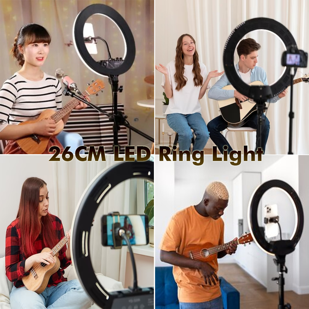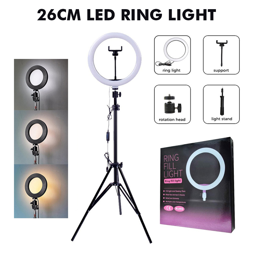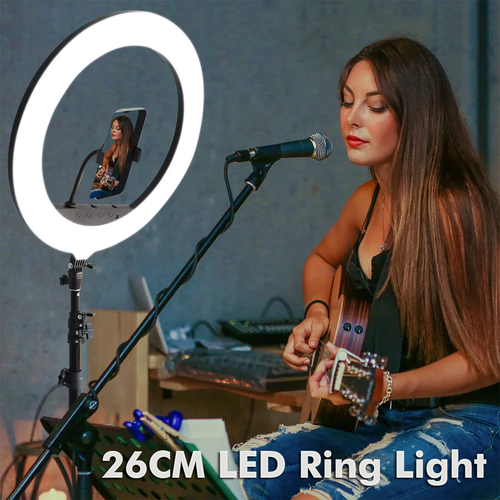 RIXTON Led Ring Light with Stand And Phone Holder Photo Studio Photography Dimmable Ringlight 26cm