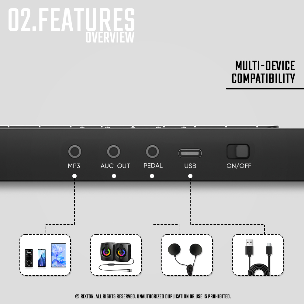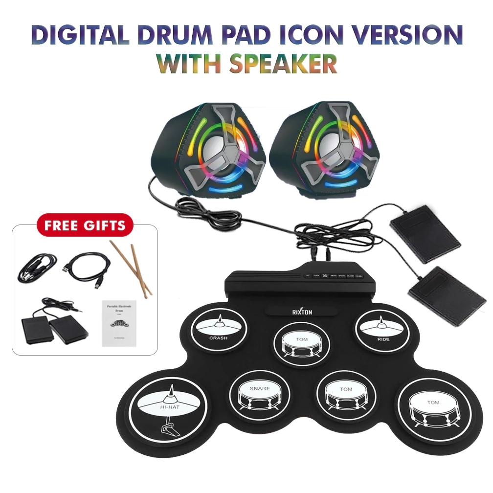 RIXTON Portable Electric Drum Pad Digital Drum Silicone With Drumsticks and Sustain Foot Pedal