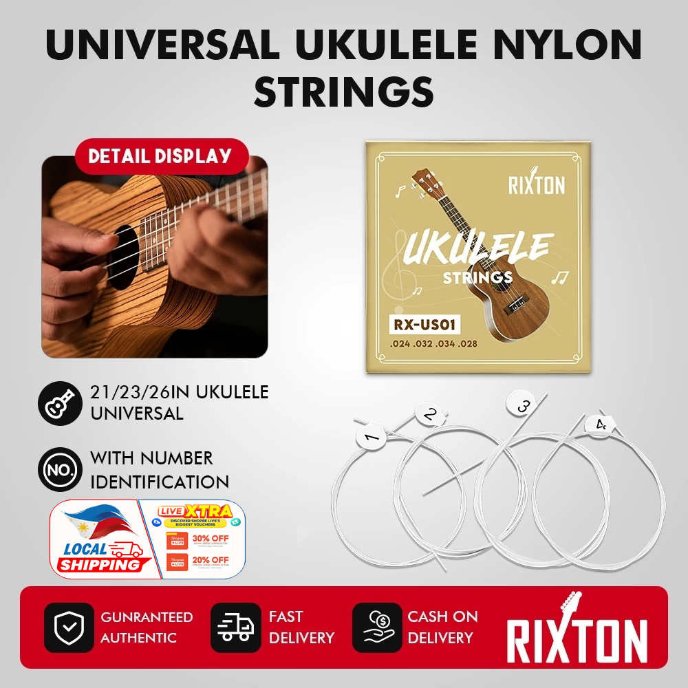 RIXTON White Nylon Ukulele Strings Set 4pcs U105 Ukulele String Nylon Soprano Concert Tenor Ukulele