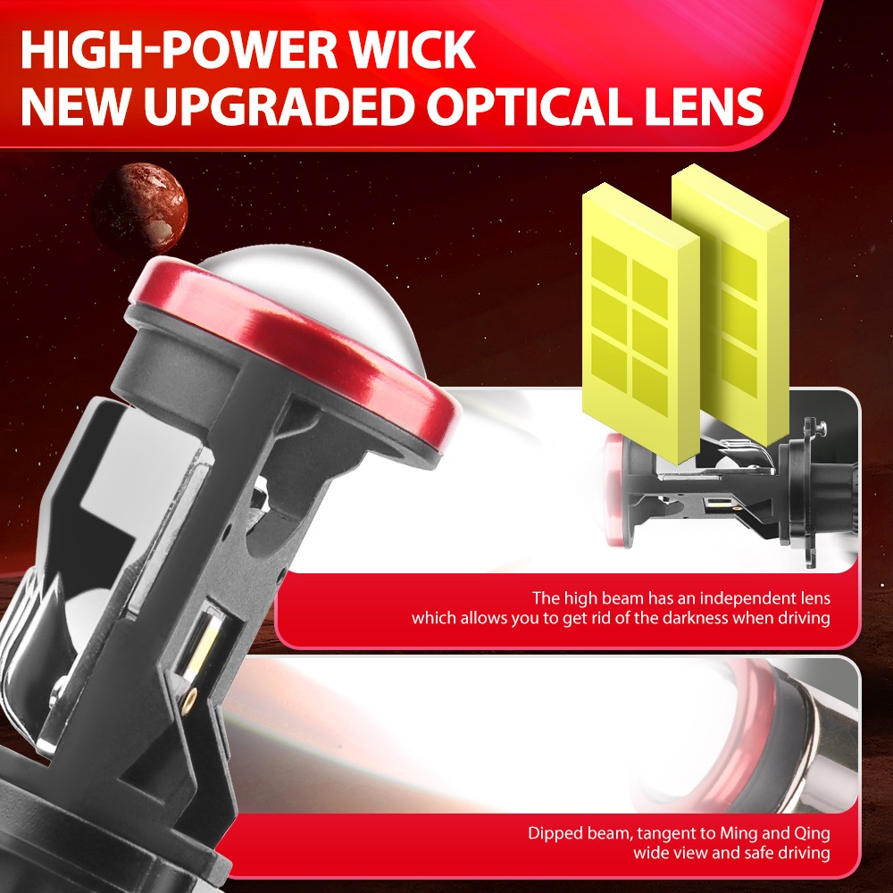 Roadsun 1 Pair Super Bright LED Headlight H4 Canbus Bi LED Mini Lens Car Headlight Bulb LHD Projector Lens Dual Beam Lense Lights CSP Chips 180000LM 6000K White 12V 24V