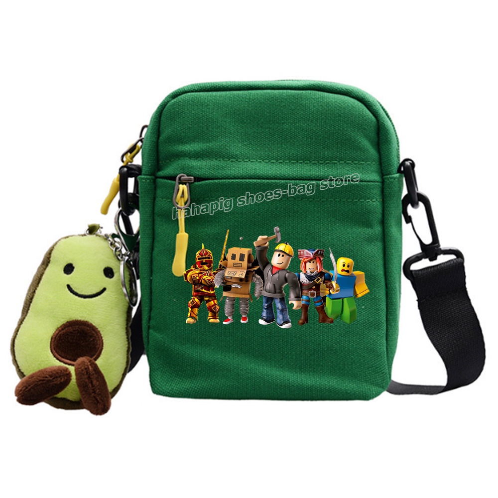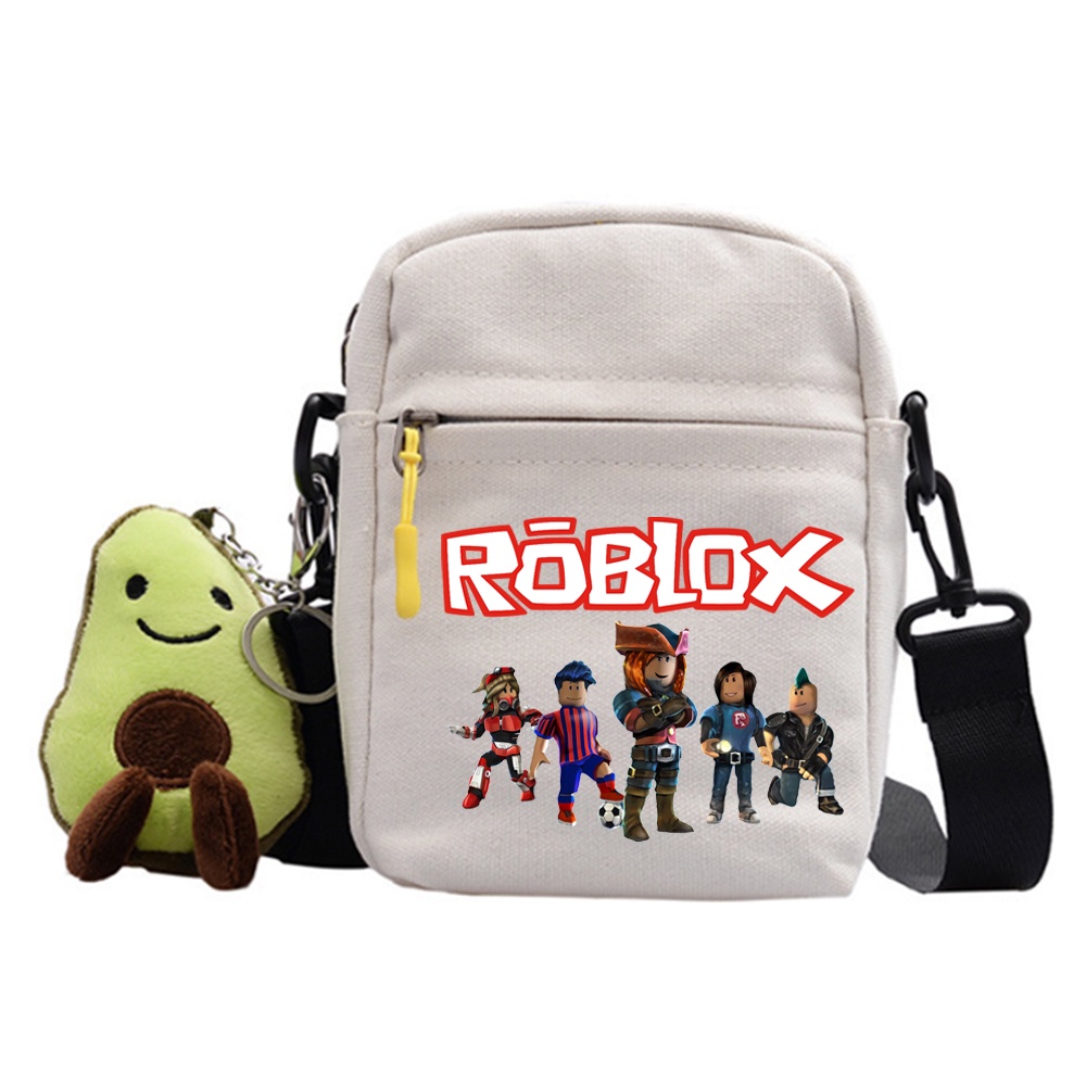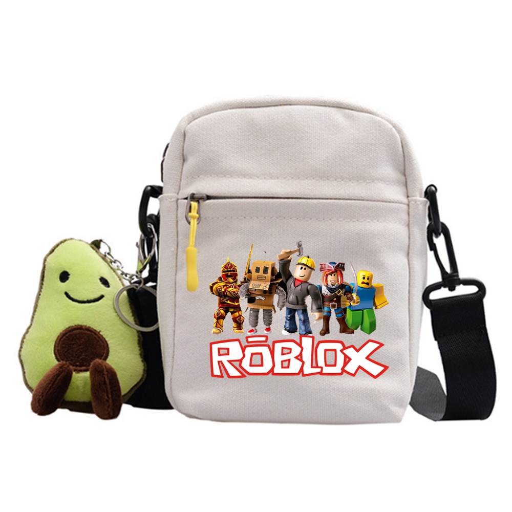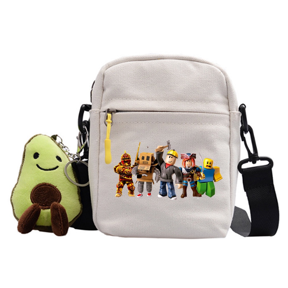 Roblox Children Women Canvas Mini Shoulder Bag Cute Cartoon Crossbody Bags with Keycahin Anime Game Printed Messager Bag Satchel