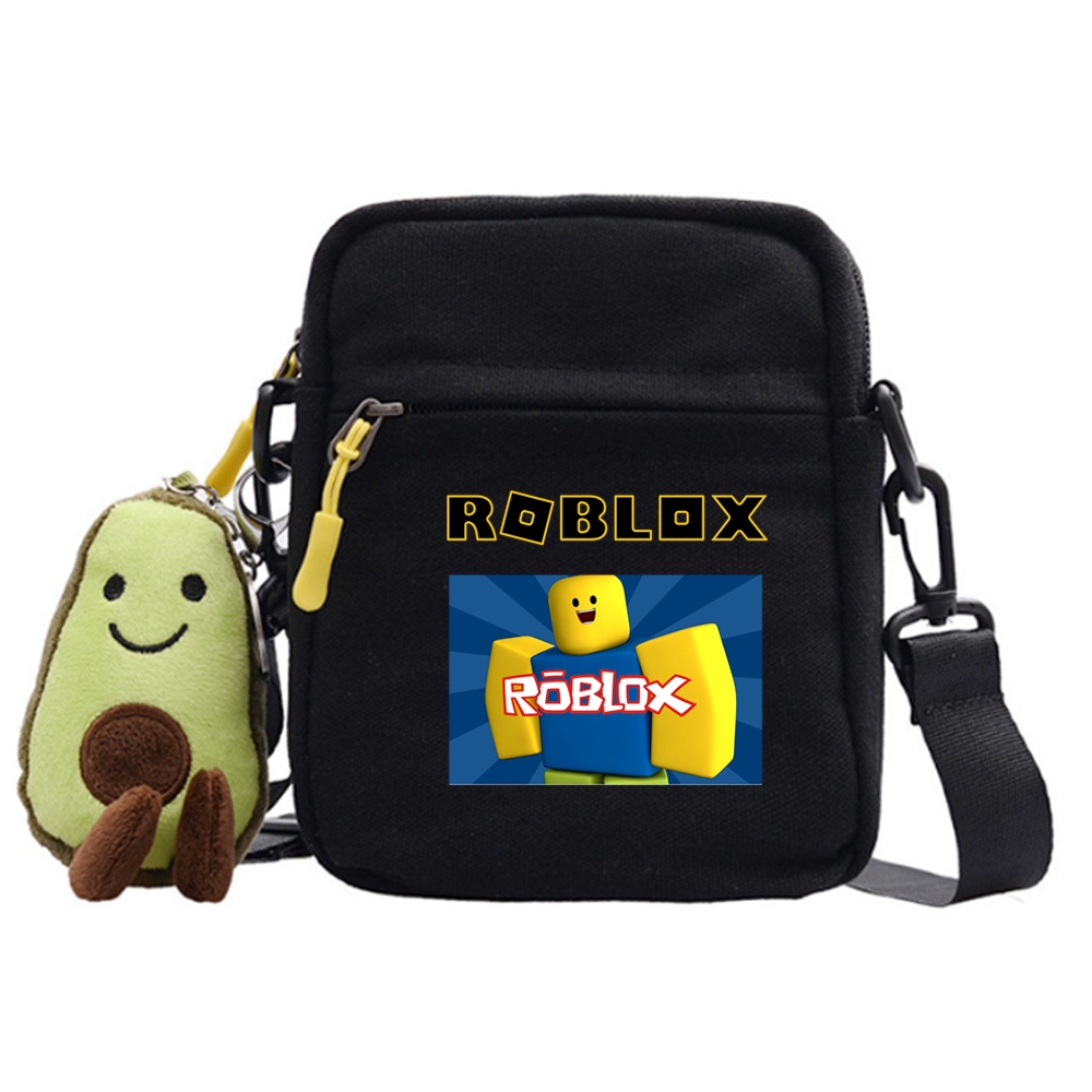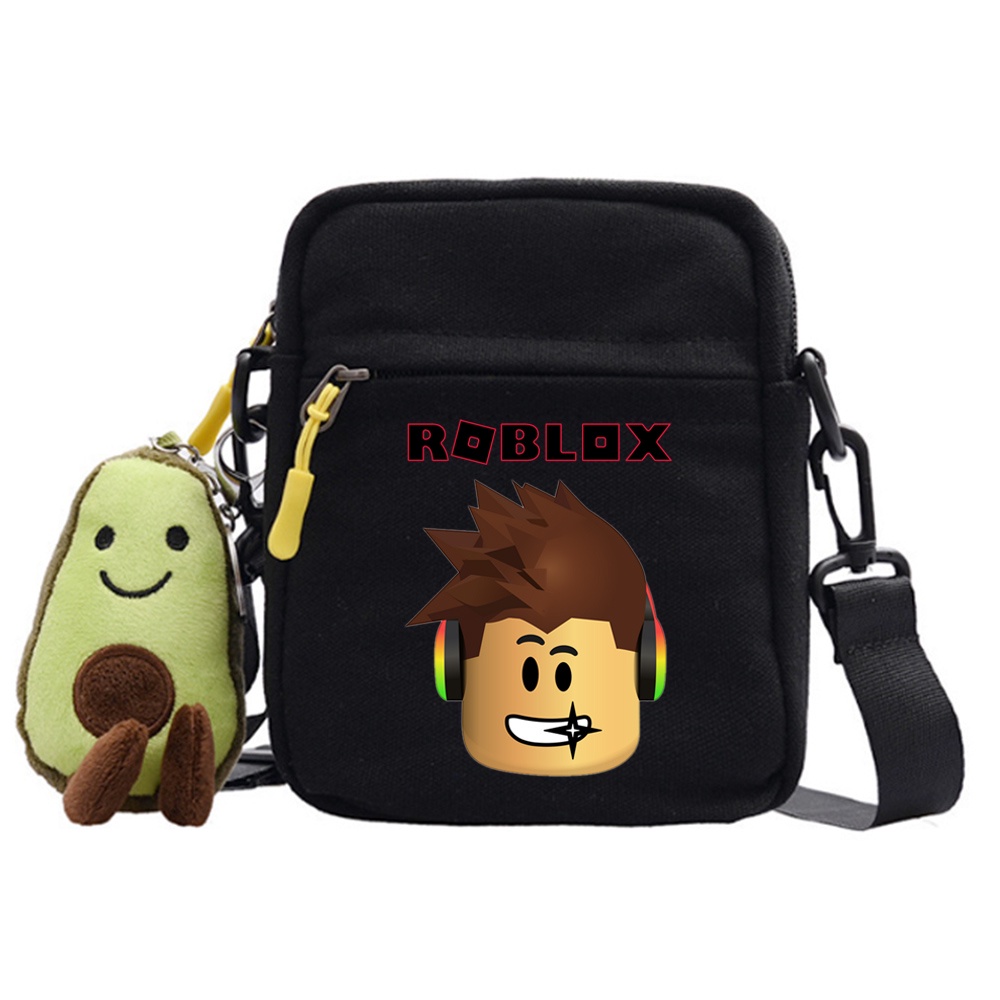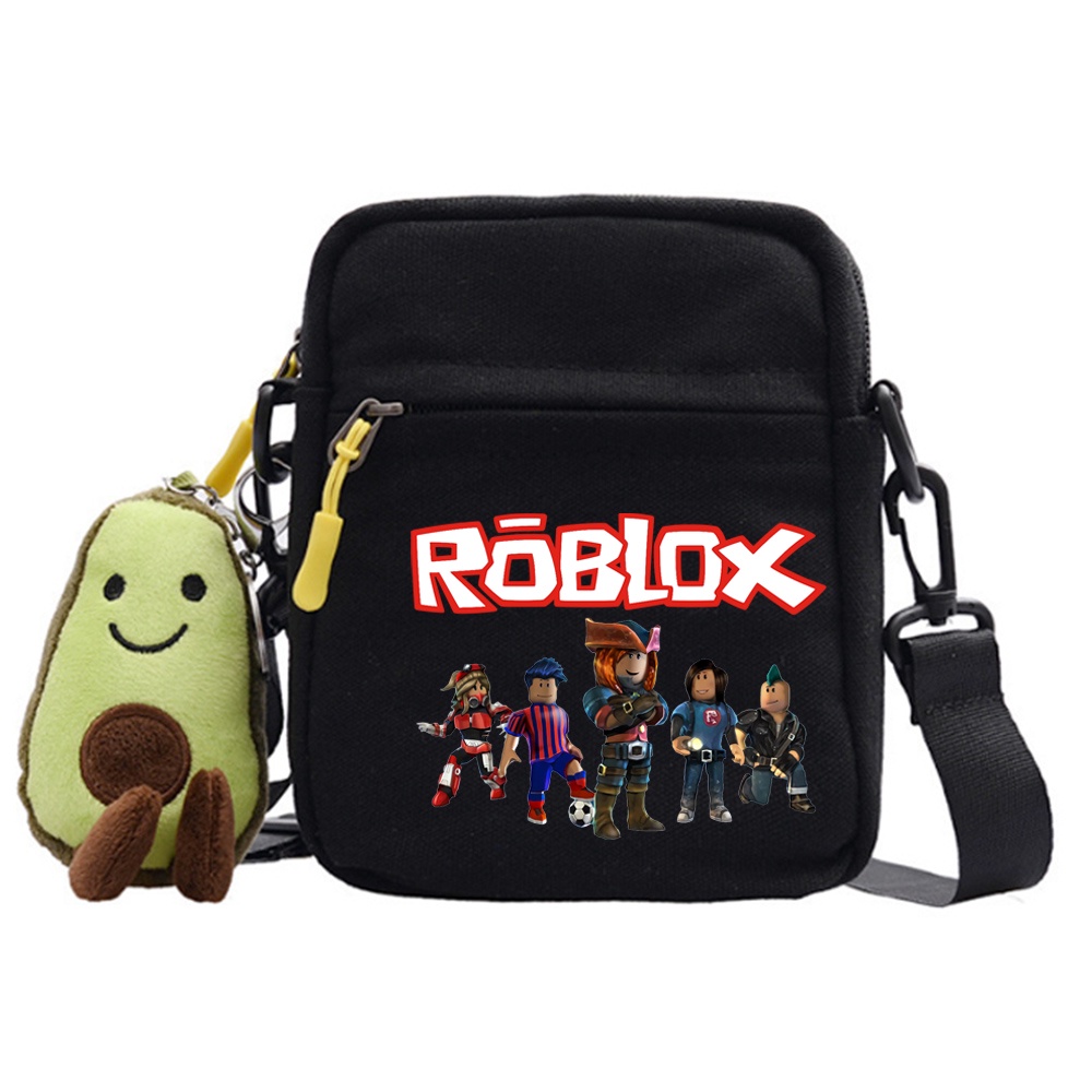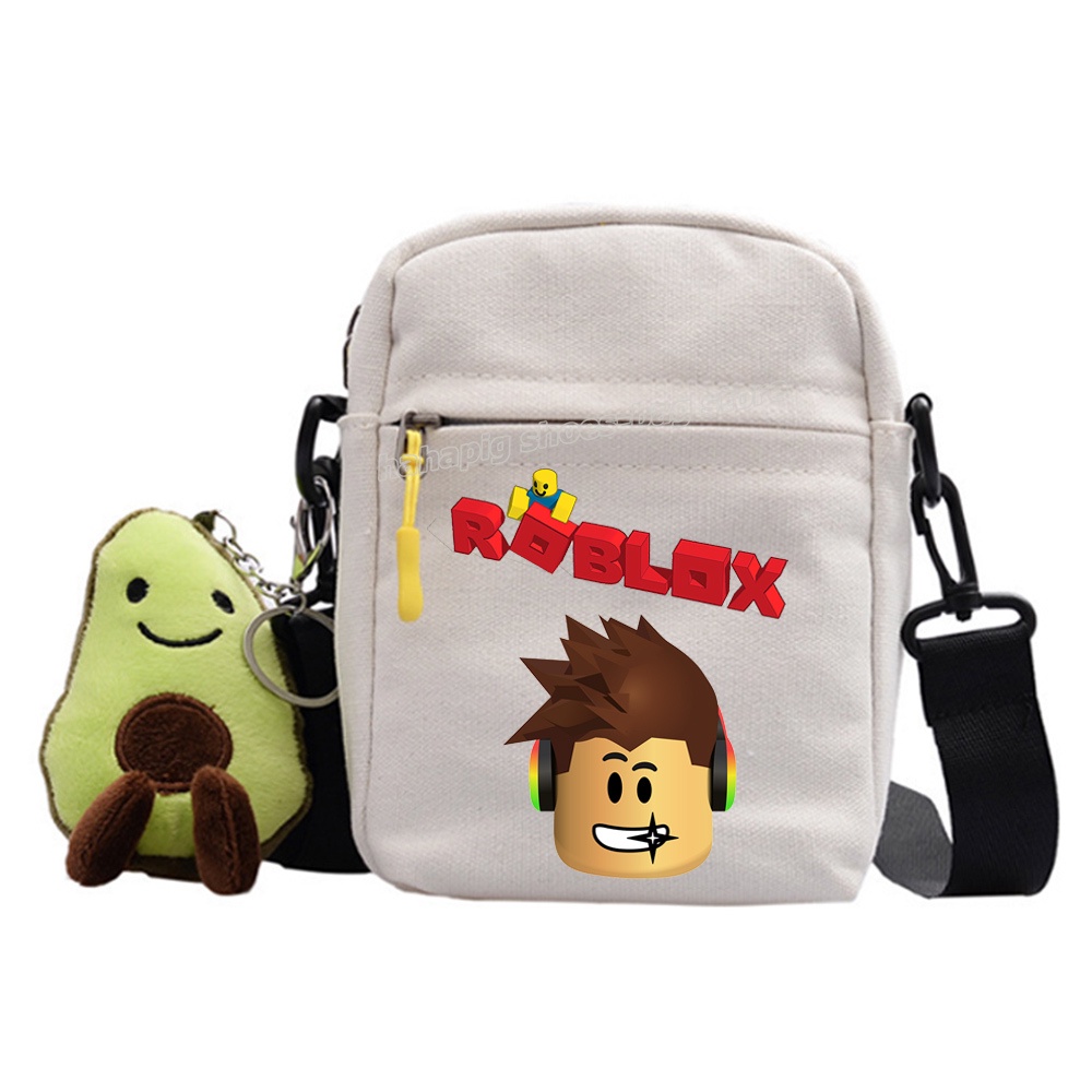 Roblox Children Women Canvas Mini Shoulder Bag Cute Cartoon Crossbody Bags with Keycahin Anime Game Printed Messager Bag Satchel