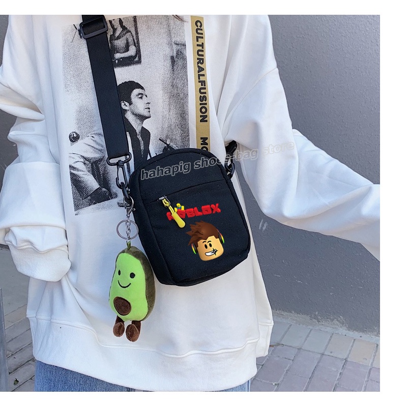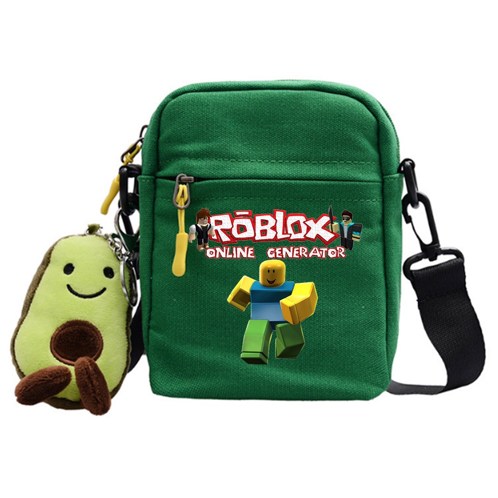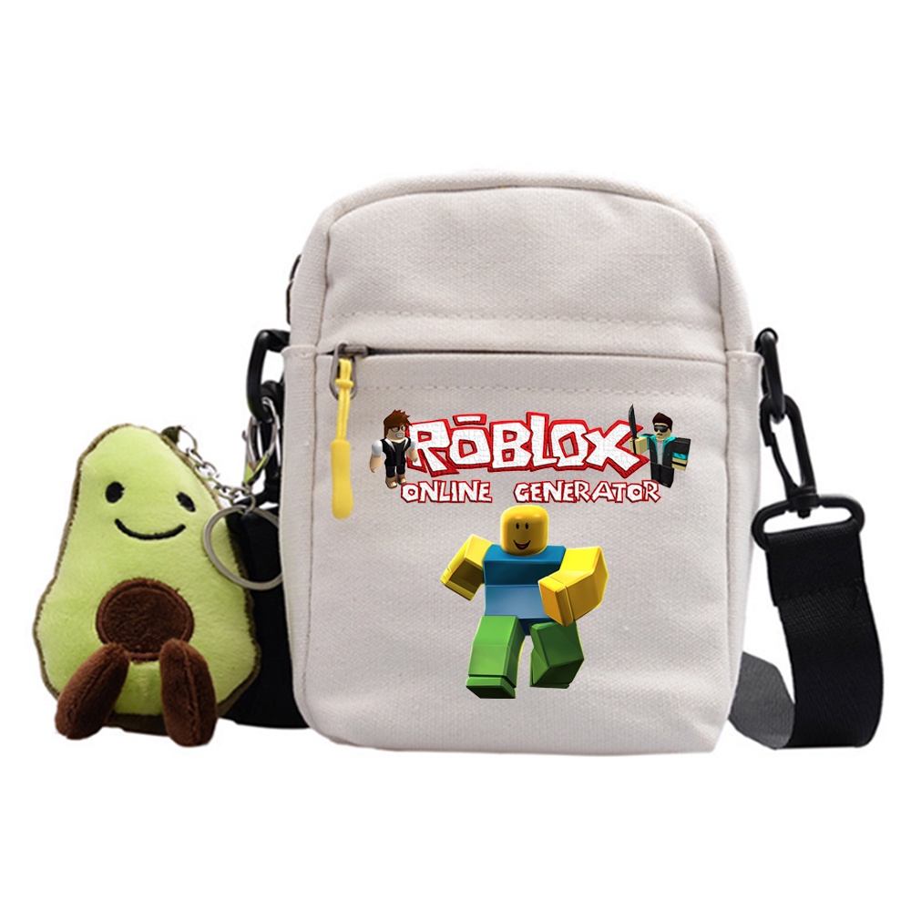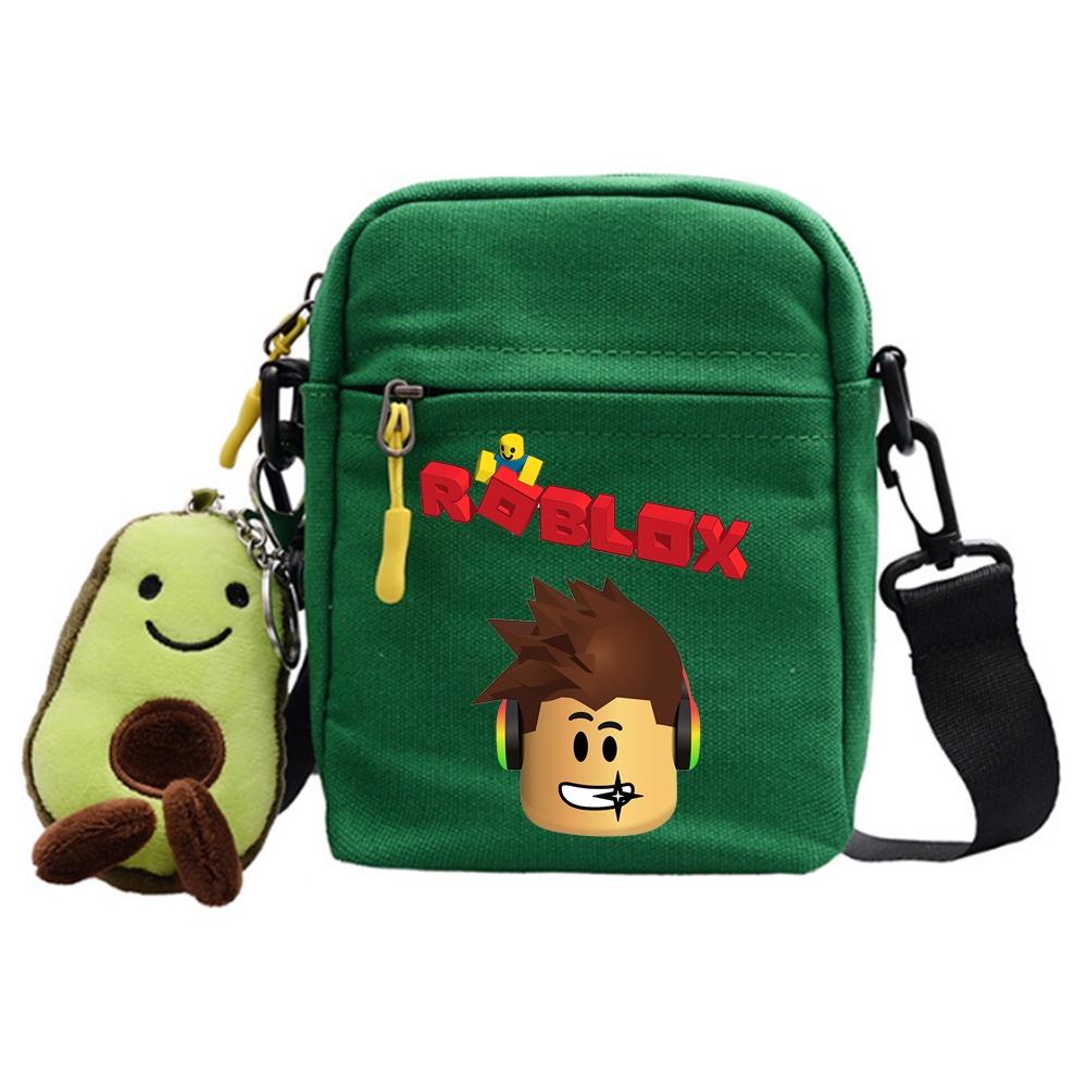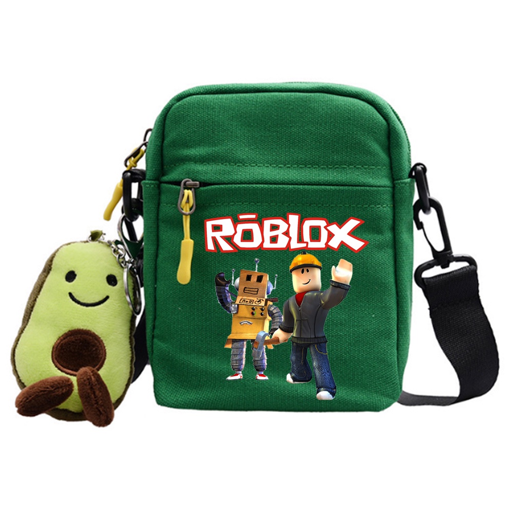 Roblox Children Women Canvas Mini Shoulder Bag Cute Cartoon Crossbody Bags with Keycahin Anime Game Printed Messager Bag Satchel