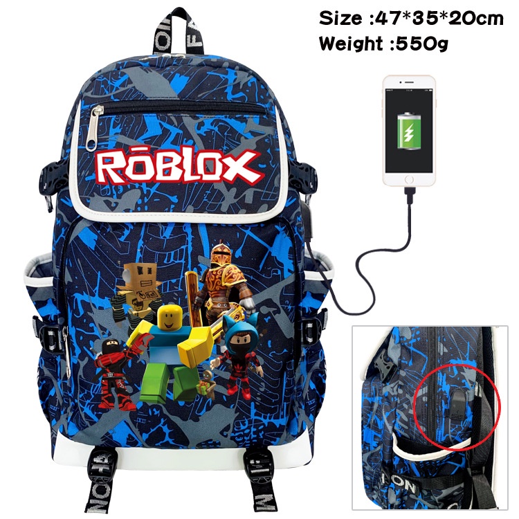 Robloxs Bag For Kids Boy Roblox Canvas Student Backpack Cartoon Anime School Bag USB Data Cable Outdoor Computer Travel Boy Rob Lox