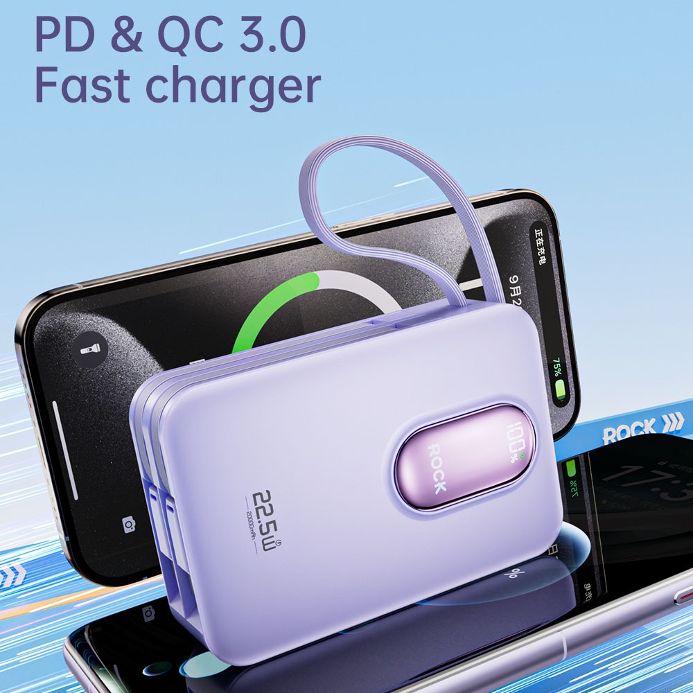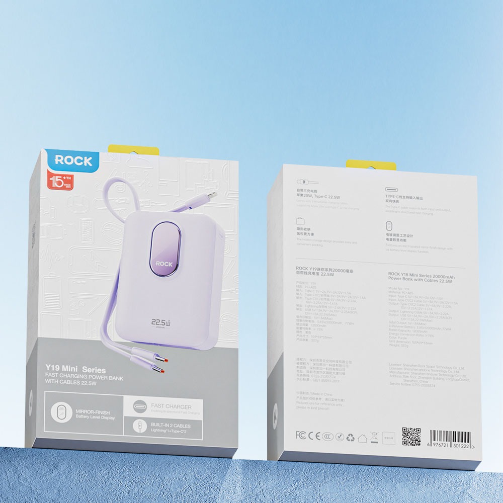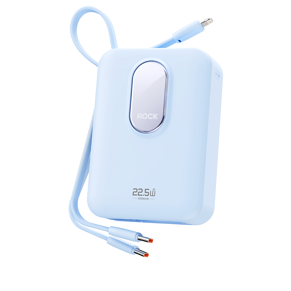 Rock Space Y19 Mini Series Power Bank Built-in 3 Cables 20000mAh 22.5W Fast Charging Powerbank