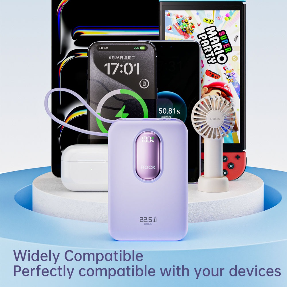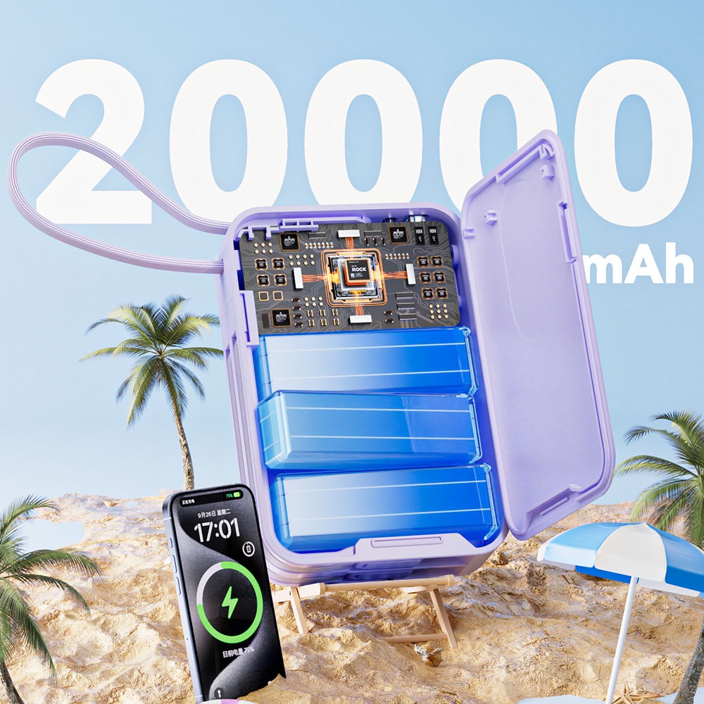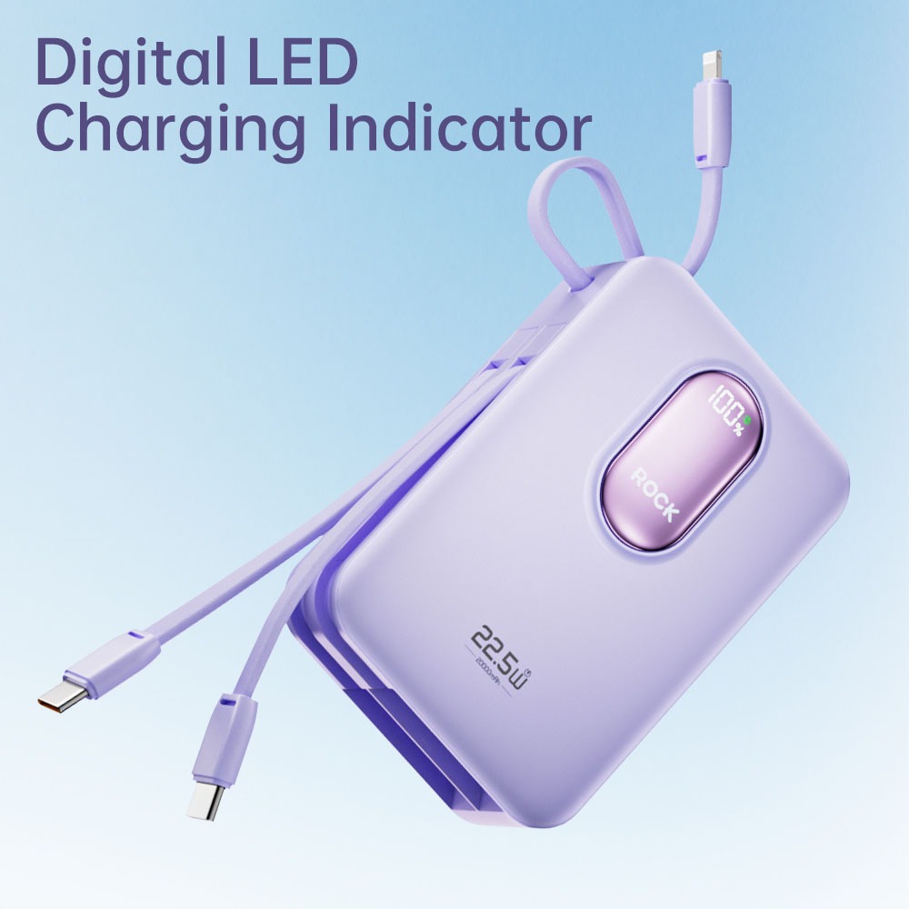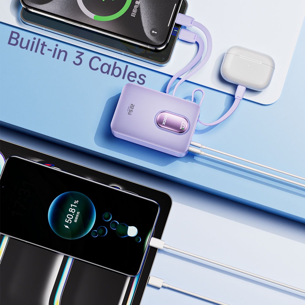 Rock Space Y19 Mini Series Power Bank Built-in 3 Cables 20000mAh 22.5W Fast Charging Powerbank