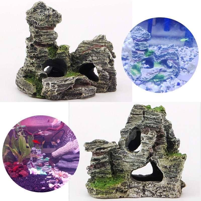 Rockery Ornament Artificial Moss Rock Resin Stone Mountain Fish Tank Hiding Cave Aquarium Decor