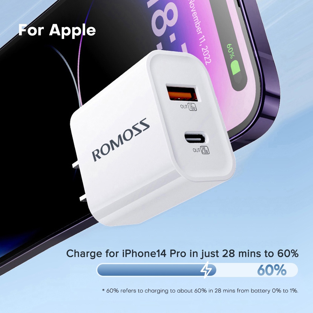 Romoss AC20RD Fast Charger + PD 20W US Plug Adapter Quick Charge 4.0 3.0 SCP Fast Charging