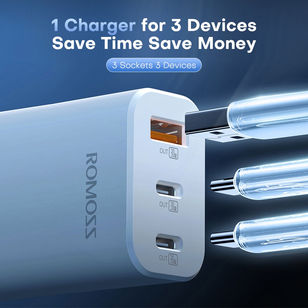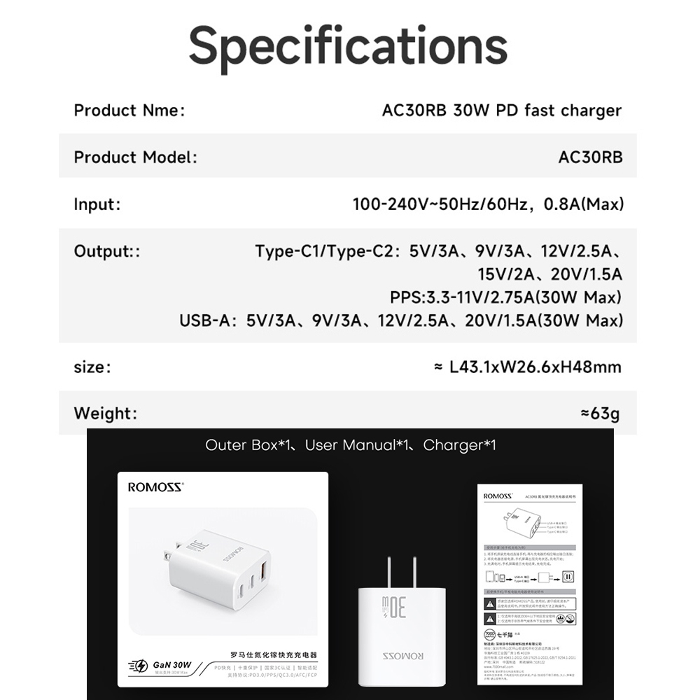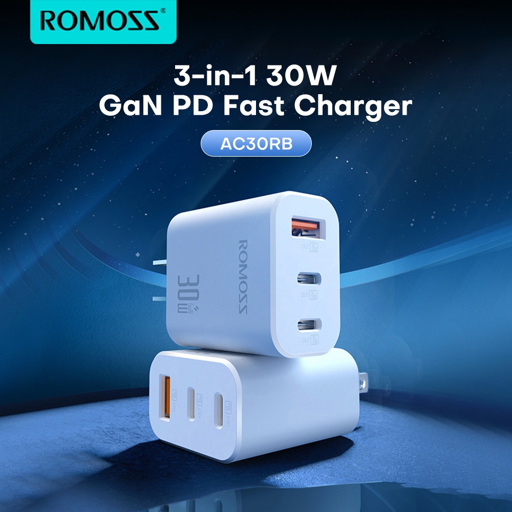 Romoss AC30RB PD30W Type C Charger Fast Charging 2 USB C Port 1 USB A Port