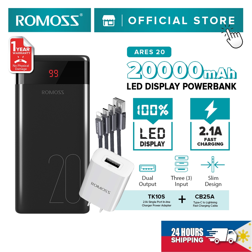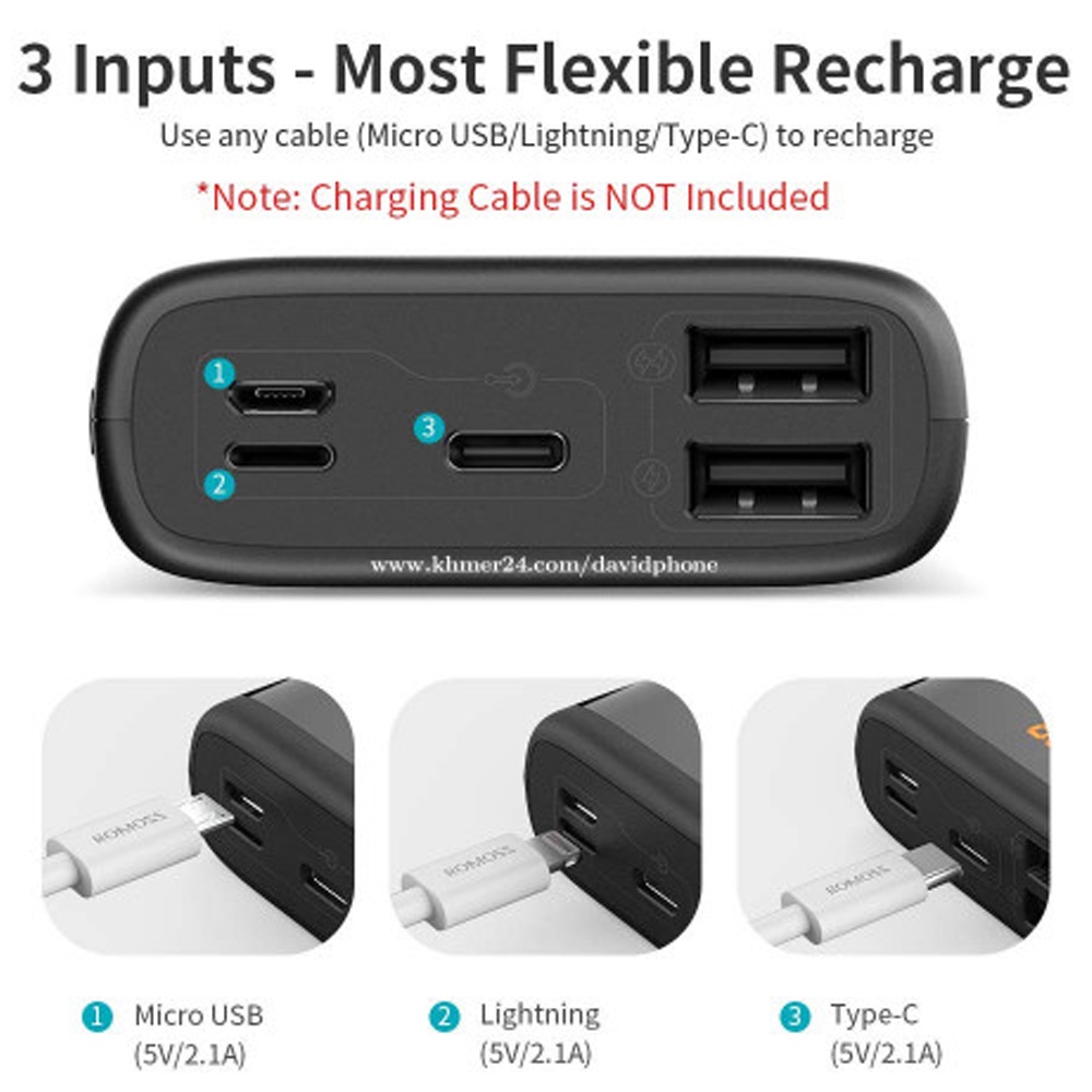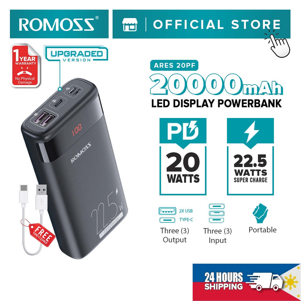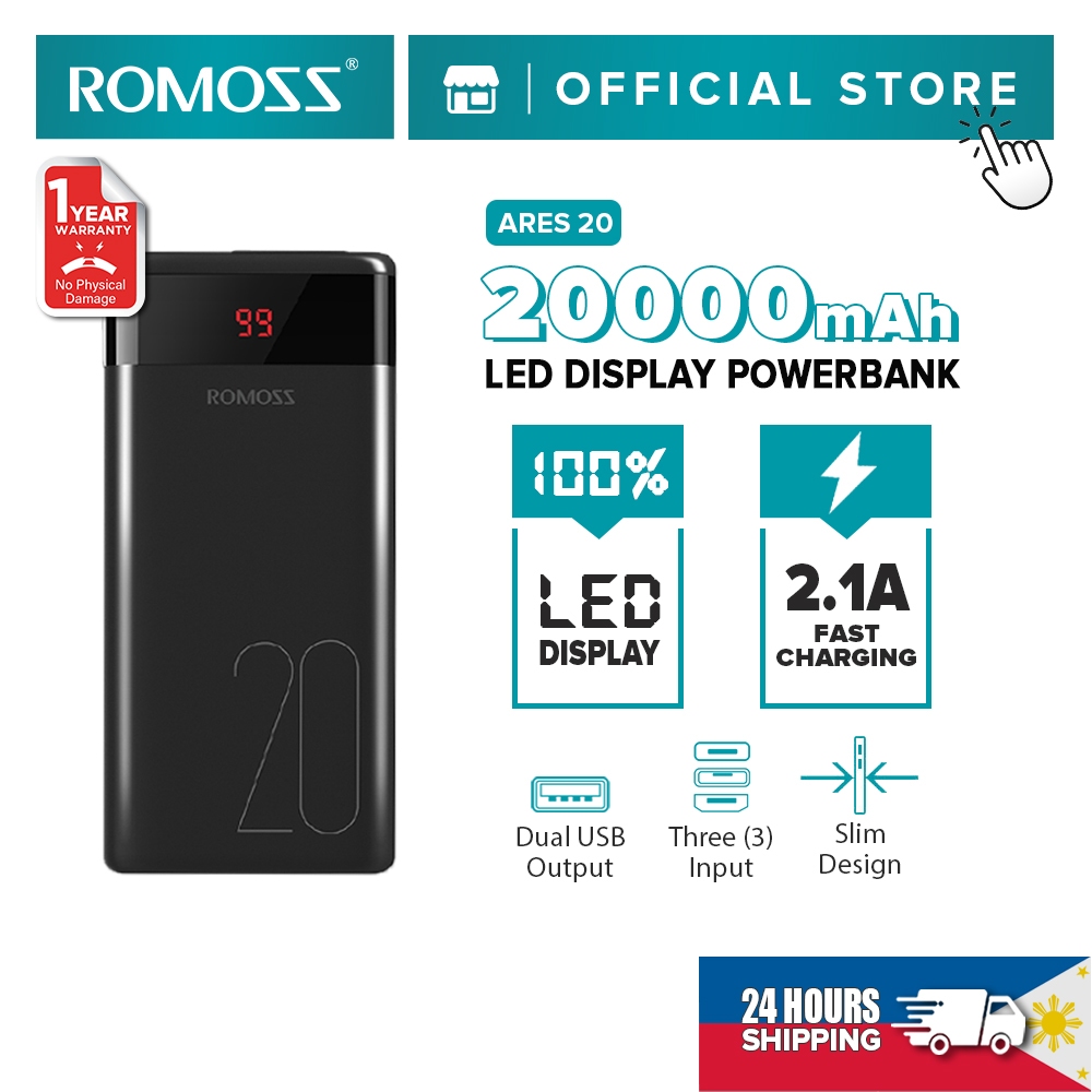 Romoss Ares 20 20000mah 3 Input High Capacity Easy to Fit Dual USB Output Powerbank