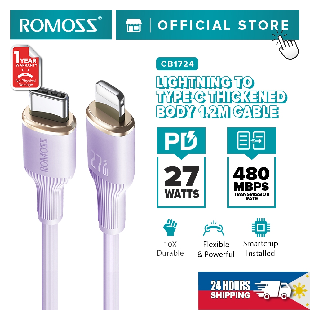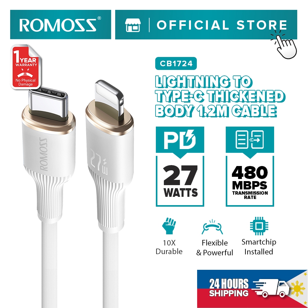 Romoss CB1724 1.2M 2.4A 27W Type C to Light ning Cable Charger Fast Charging