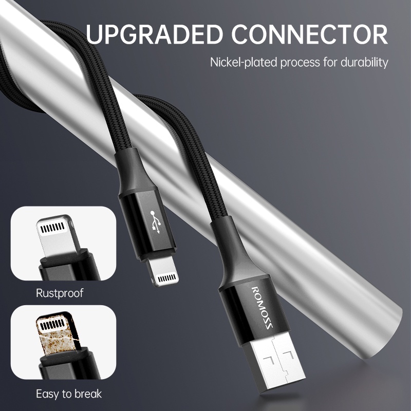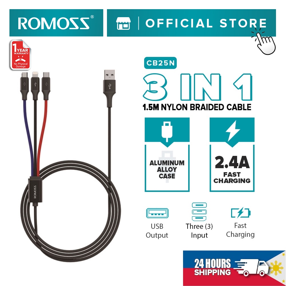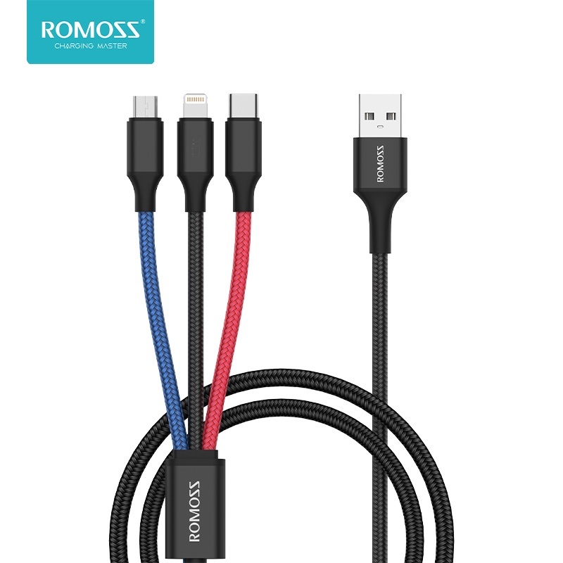 Romoss CB25N 1,5M Nylon 3 in 1 Charging Cable 2.4A USB to Lightn ing/Type C/Micro Cable