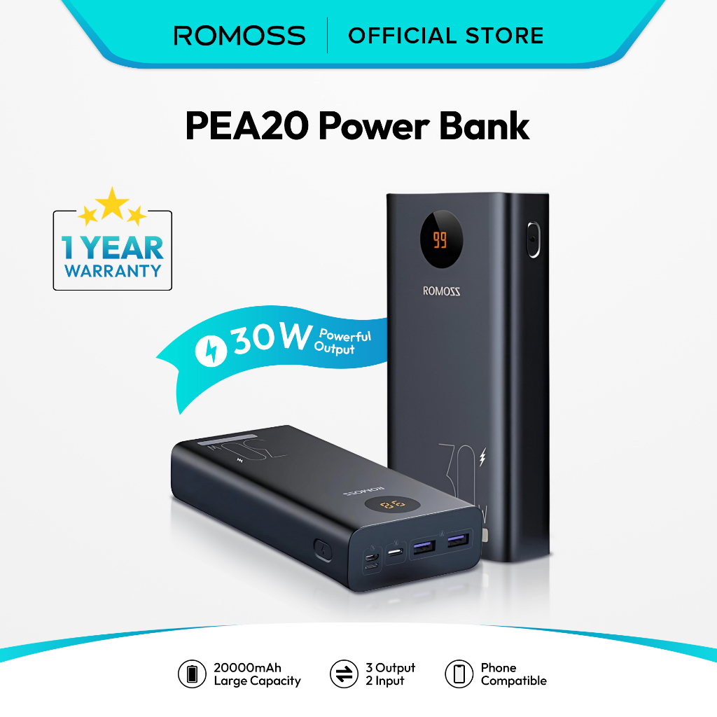 Romoss PEA20 20000mAh 30W Super Fast Charging Power Bank With Led Display