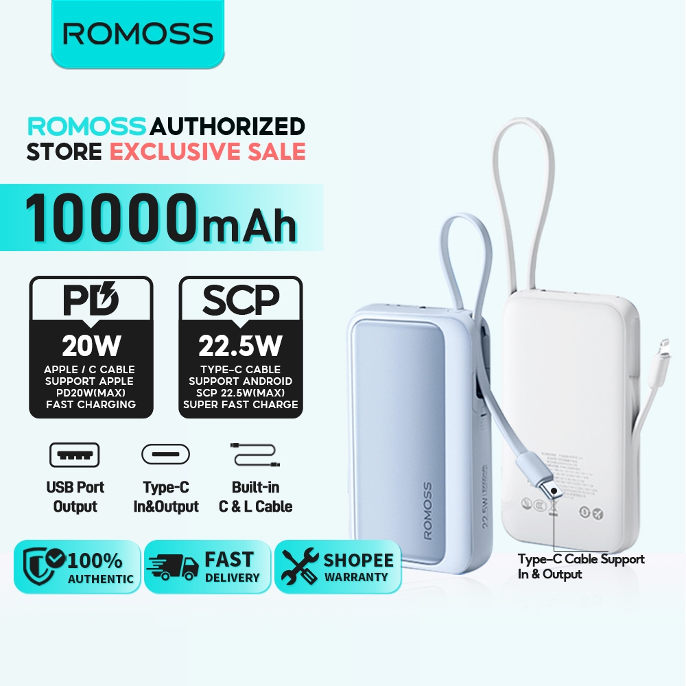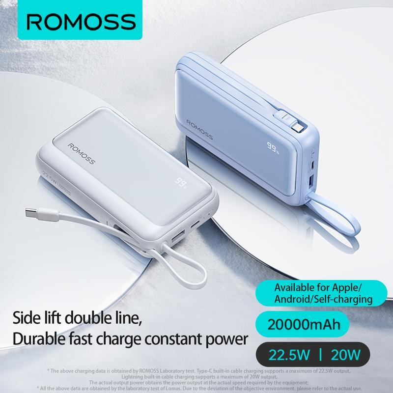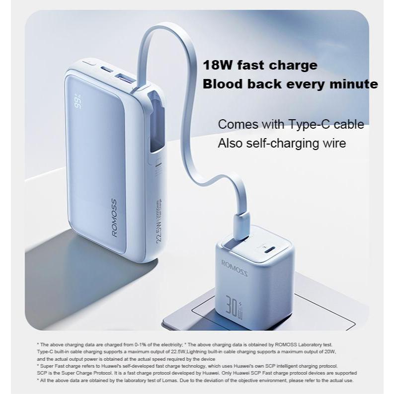 Romoss PEP Series 10000mAh 20000mAh 22.5W Fast Charging Built-in Dual Cable 4 Out 2 In LED Digital Display Powerbank