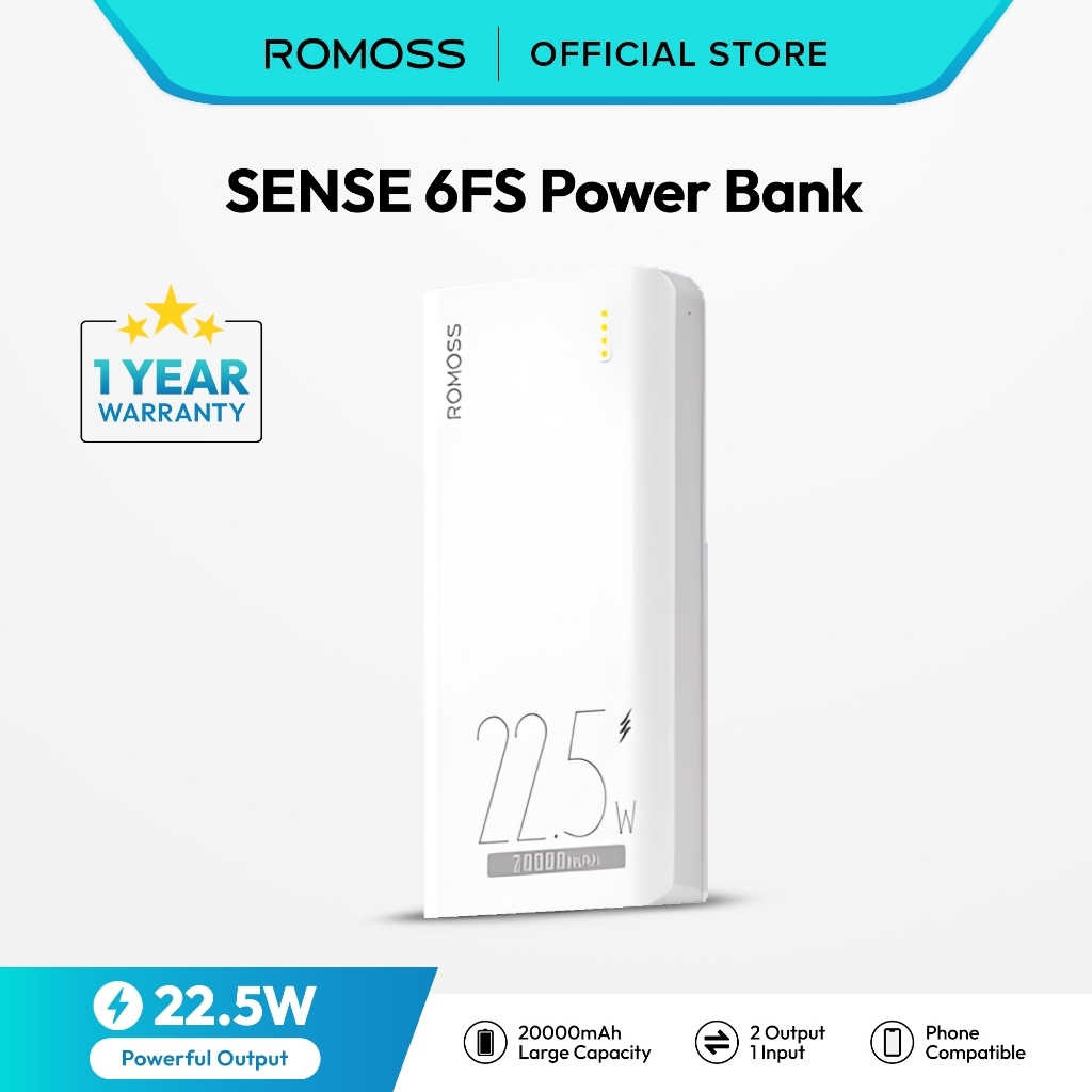 Romoss Sense 6 Plus/Sense 6F 20000mAh Powerbank 22.5W QC 3.0 PD Super Fast Charge Power Bank