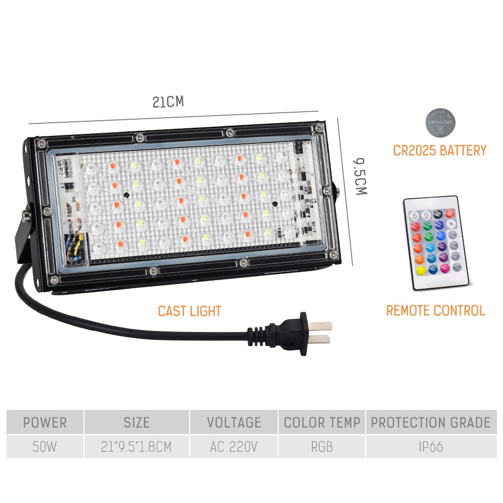 Rong River Ac220v 50w RGB Spot Light With Plug And Remote Control 16 Colors Ip65 Waterproof Outdoor Flood
