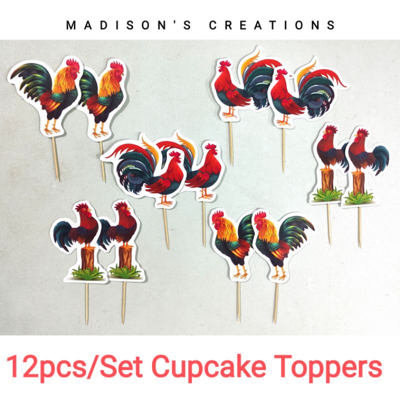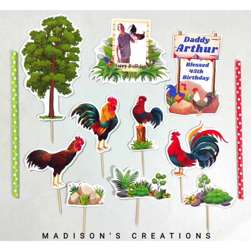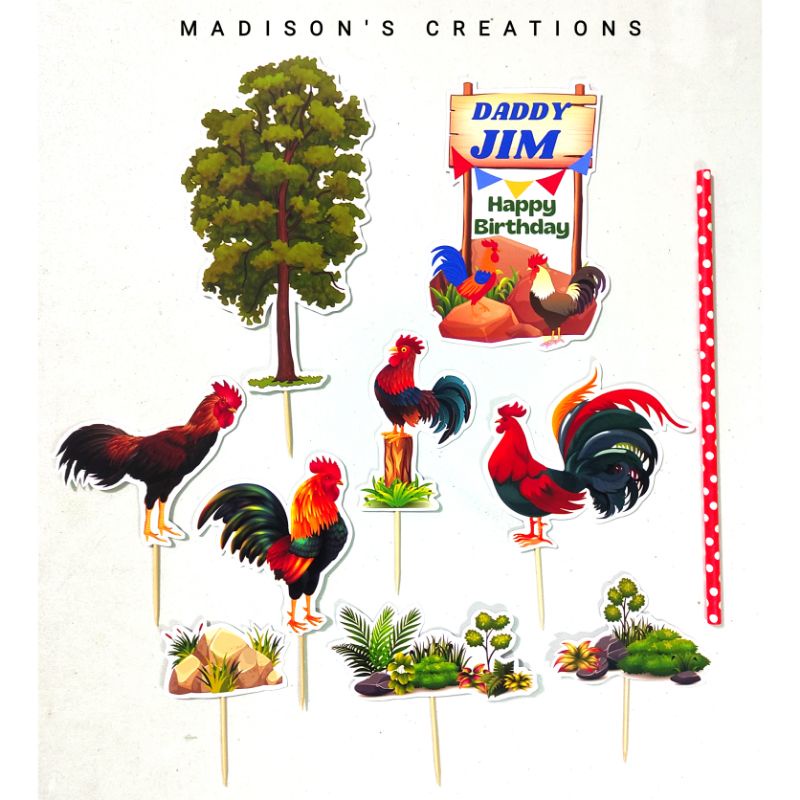 Rooster Sabong Party Cake Topper/Banner, Backdrop Set (Customize, High Quality; Ready-to-use)
