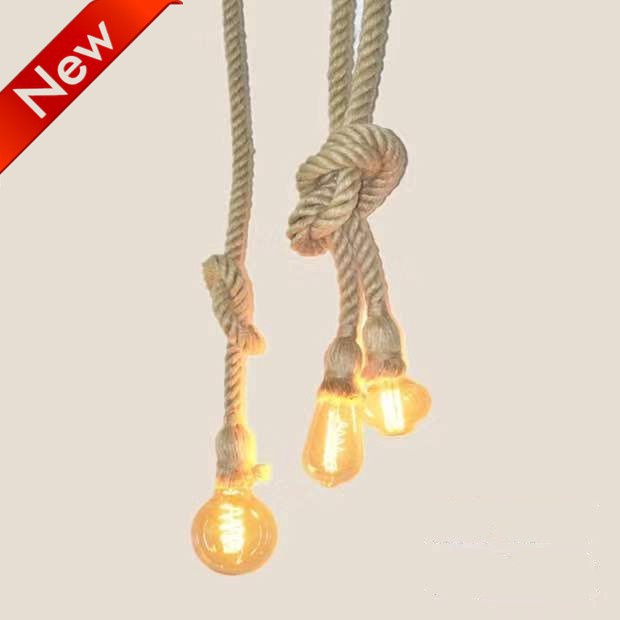 Rope Light Ceiling Rattan Chandelier Bar Drop Lamps Kitchen Hanging Lights Rope Bulb Pendant Lamp