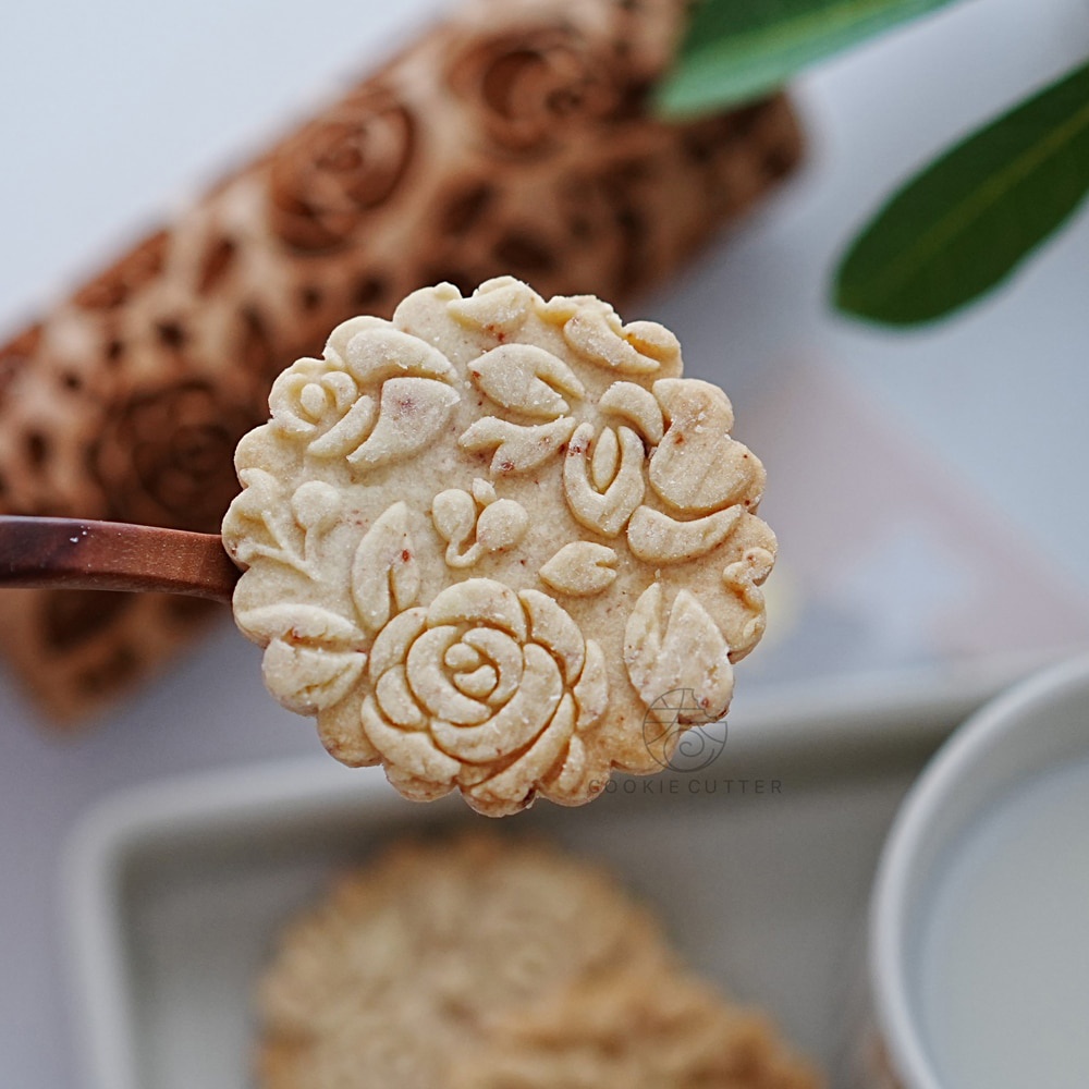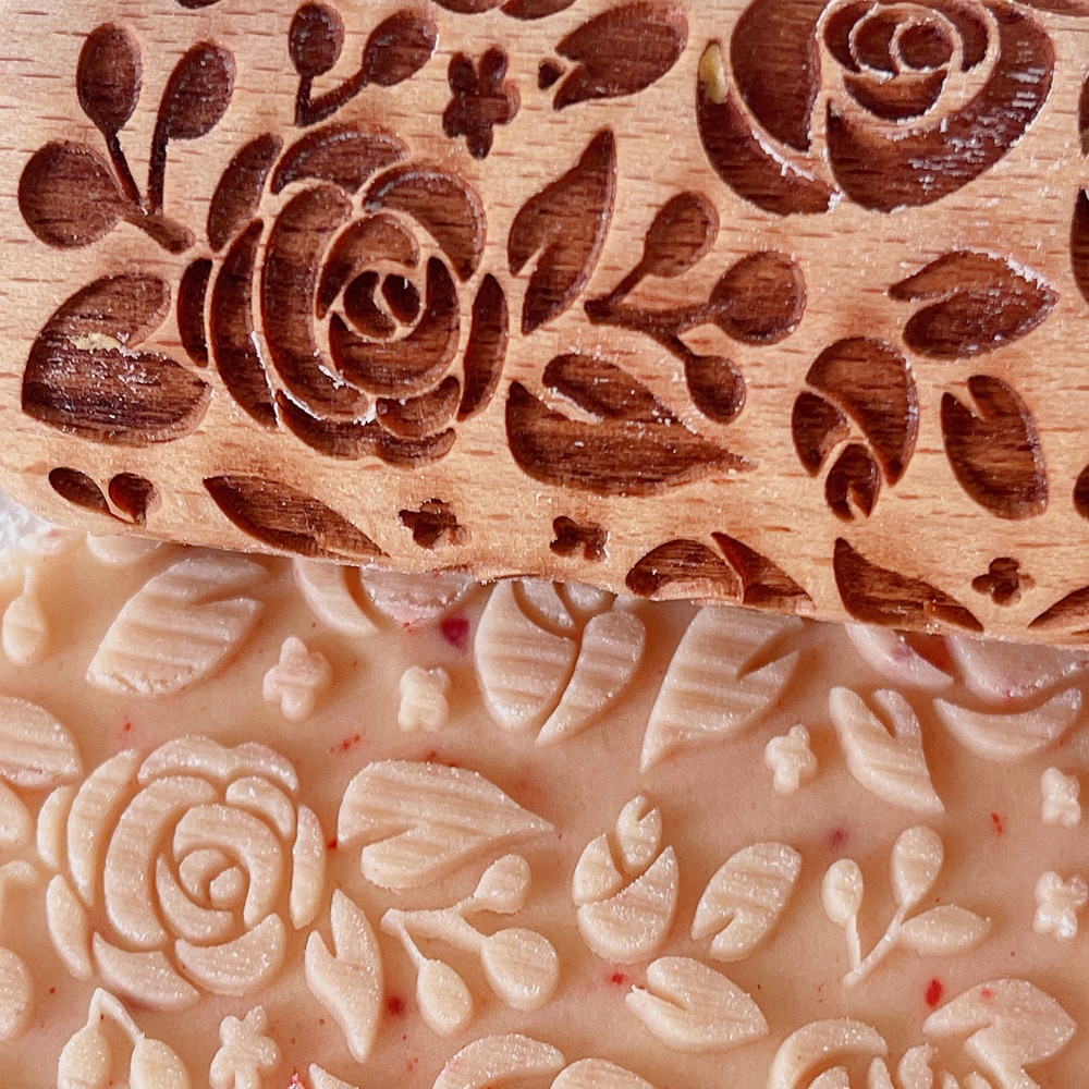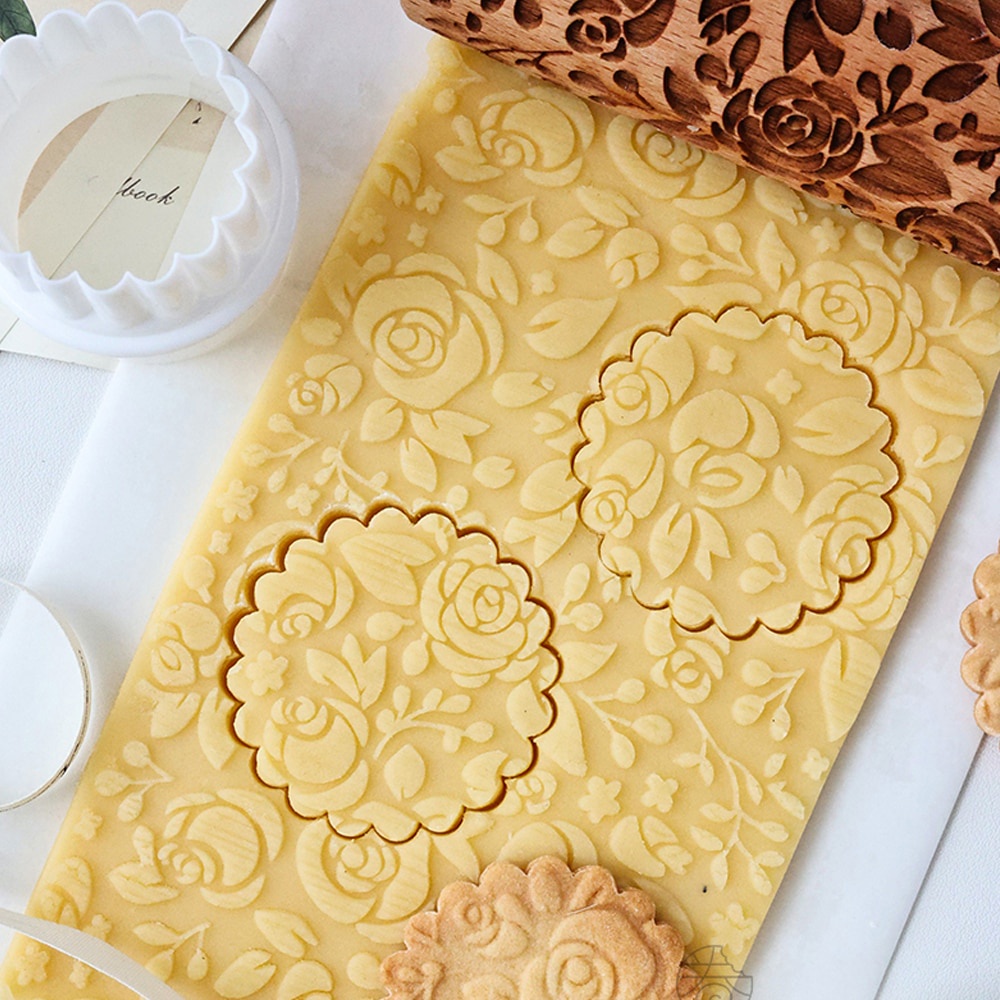 Rose Flower Pattern Rolling Pin Roller Wooden Embossing Fondant Biscuit Cookie Mold Hand Pressure Sugarcraft Baking Accessories
