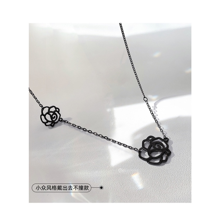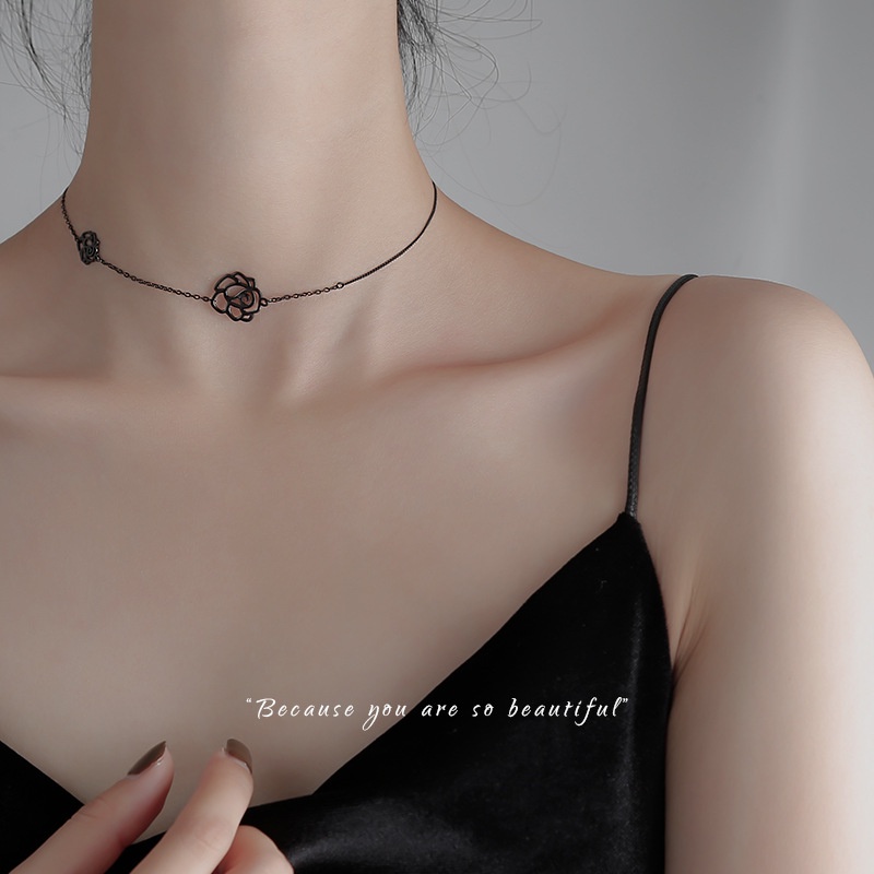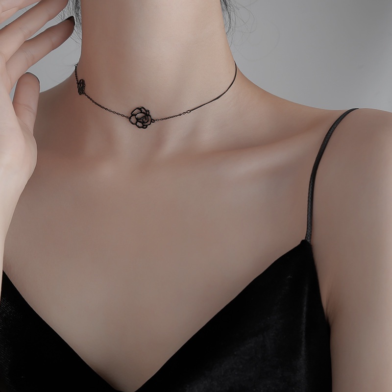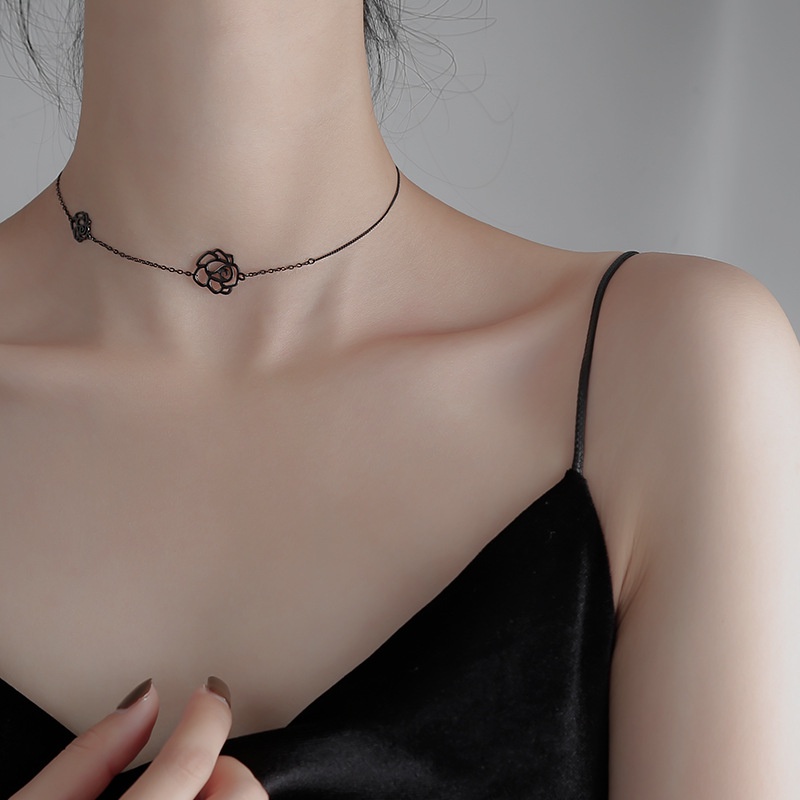 Rose Neck Chain Female Short Clavicle Chain Black Dark Tie Necklace Small Clavicle Necklace Female Niche Design Sense