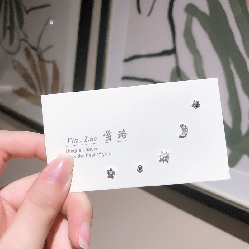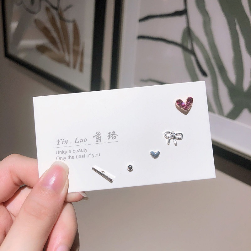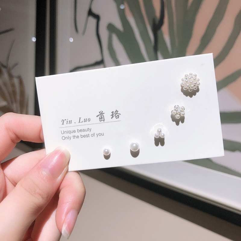 Roselife 5 Pcs S925 Chic Pearl Crystal Small Stud Earrings Set for Women Girls Fashion Ear Jewely